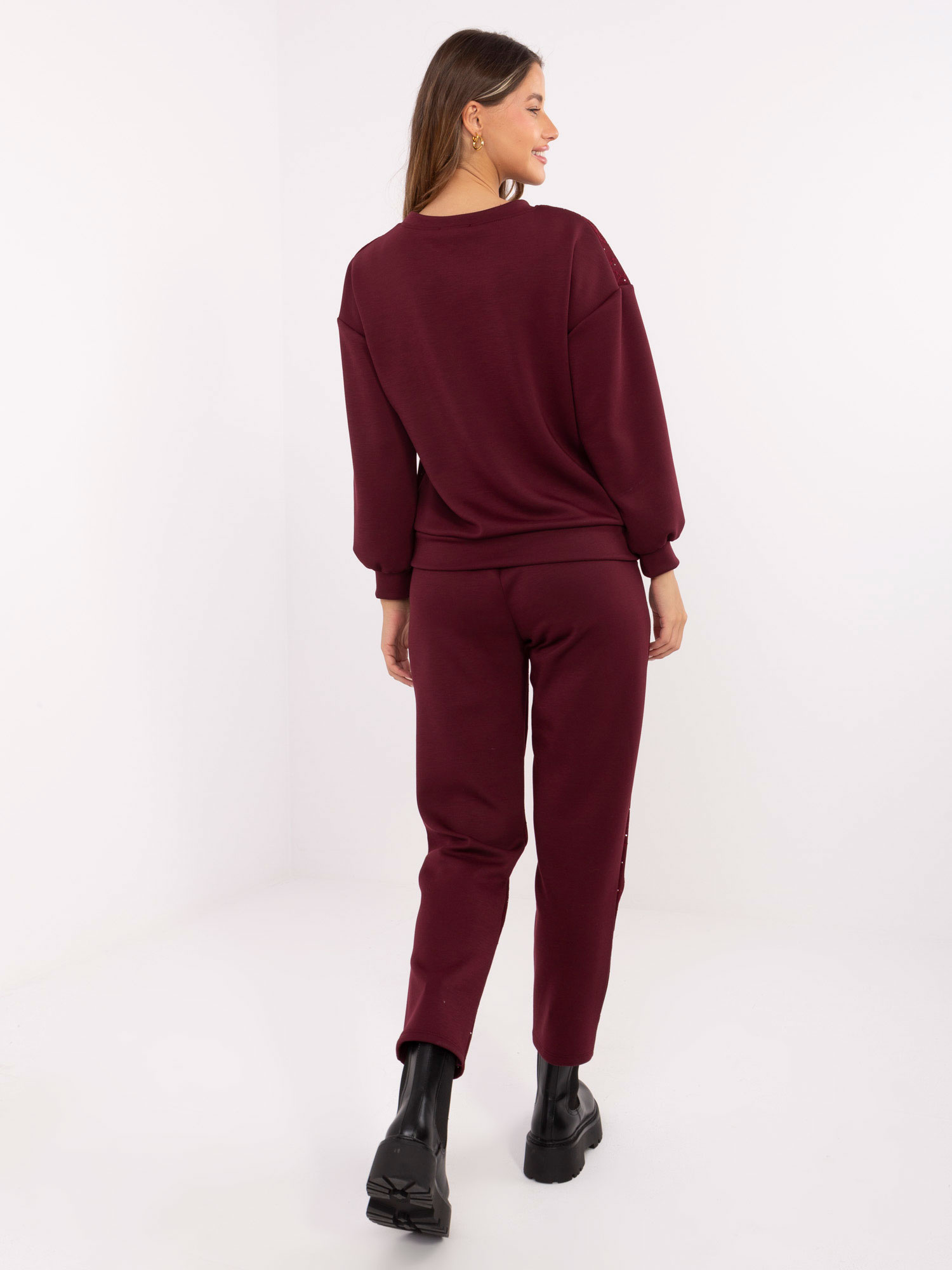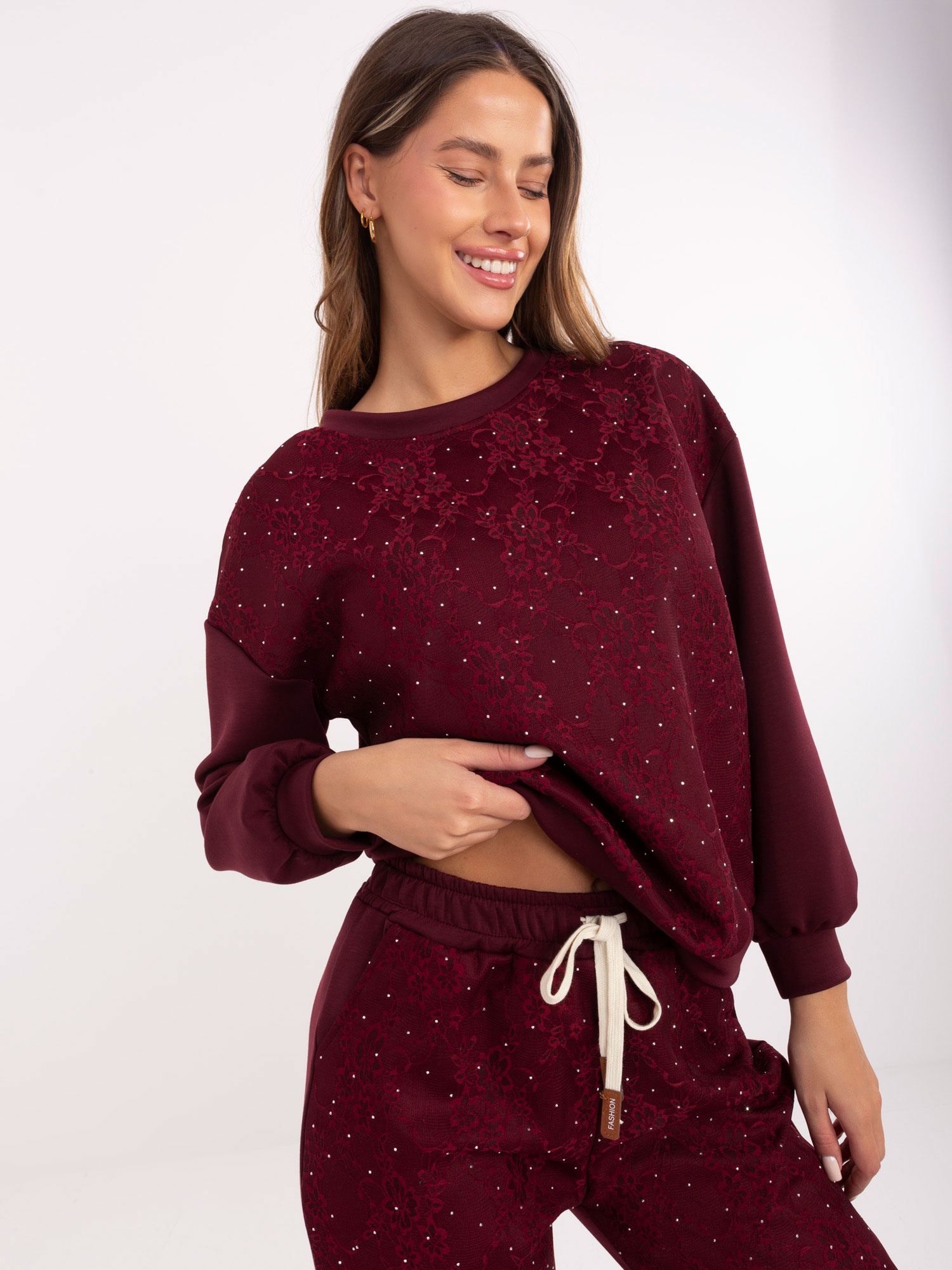 Wymiary kompletu w rozmiarze one size : szerokość pod pachami - 55 cm, długość bluzy - 65 cm, długość rękawa - 48 cm (od szwu), szerokość w biodrach - 45 cm, szerokość spodni w pasie - 37 cm (na płasko), szerokość spodni w pasie - 91 cm (po rozciągnięciu), szerokość w biodrach - 54 cm, długość spodni - 99 cm.