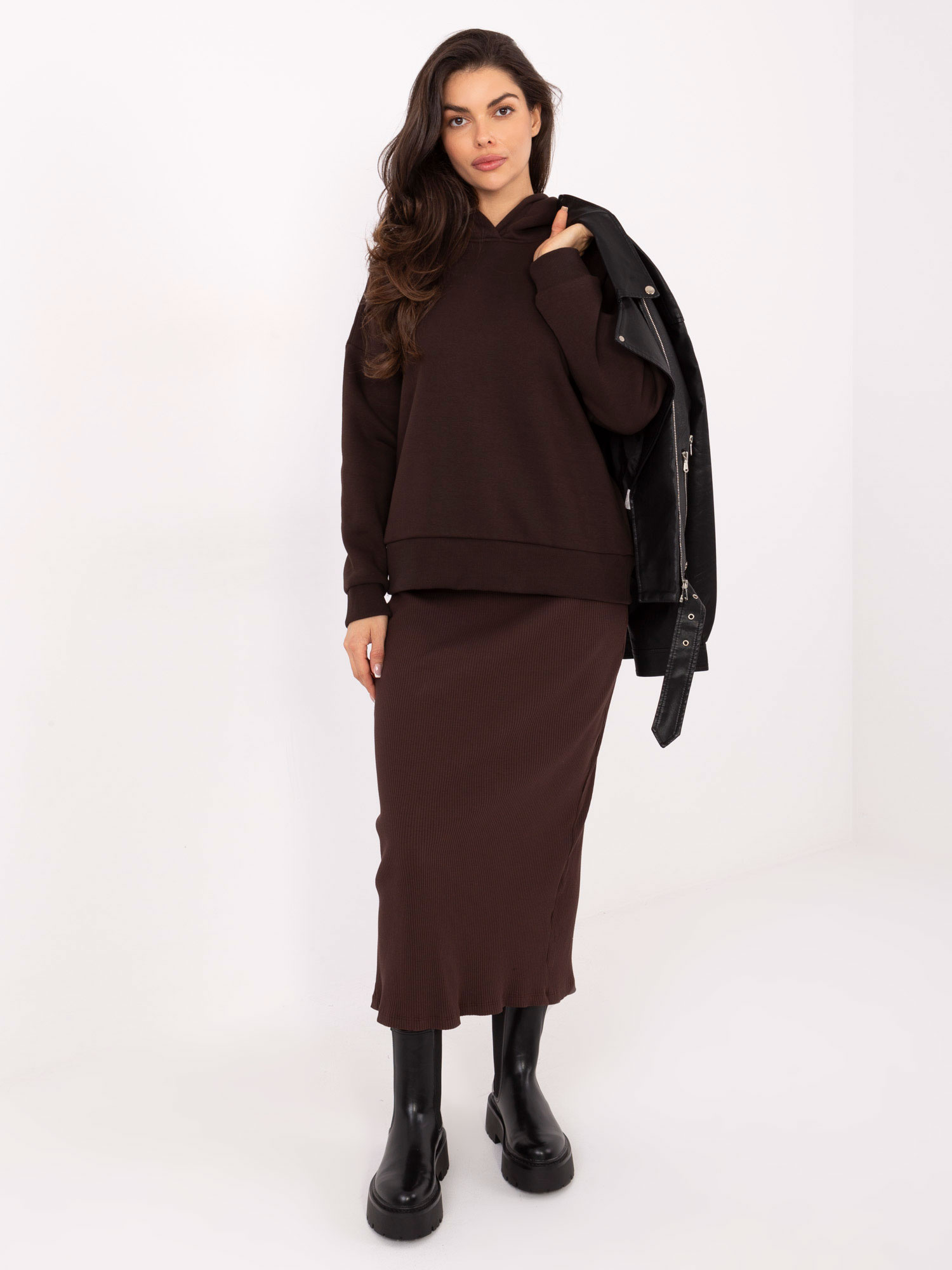 Wymiary spódnicy w rozmiarze one size mierzone na płasko: szerokość w pasie - 39 cm (na płasko), szerokość w pasie - 75 cm (po rozciągnięciu), długość całkowita - 83 cm, szerokość w biodrach - 43 cm.
