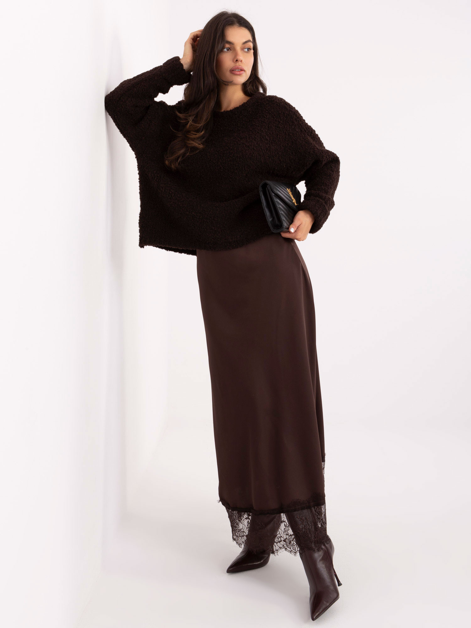 Ciemnobrązowa trapezowa spódnica z koronką RUE PARIS .