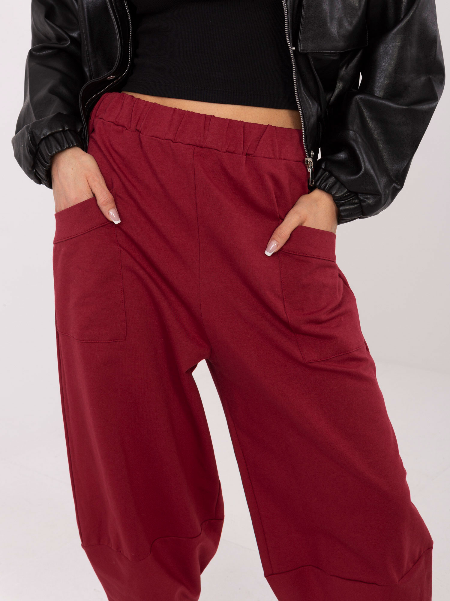 Opinie o Bordowe dresowe spodnie basic typu alladynki