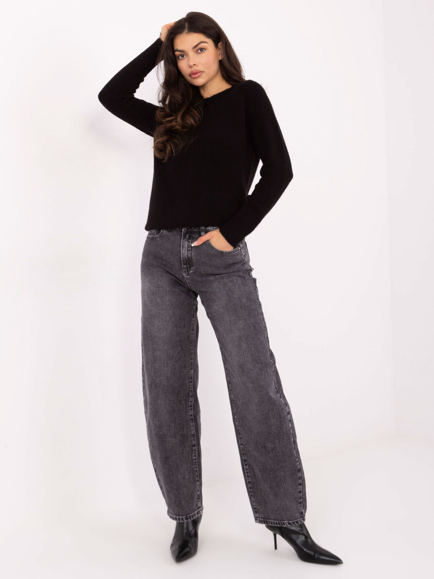 Czarny klasyczny sweter z okrągłym dekoltem .