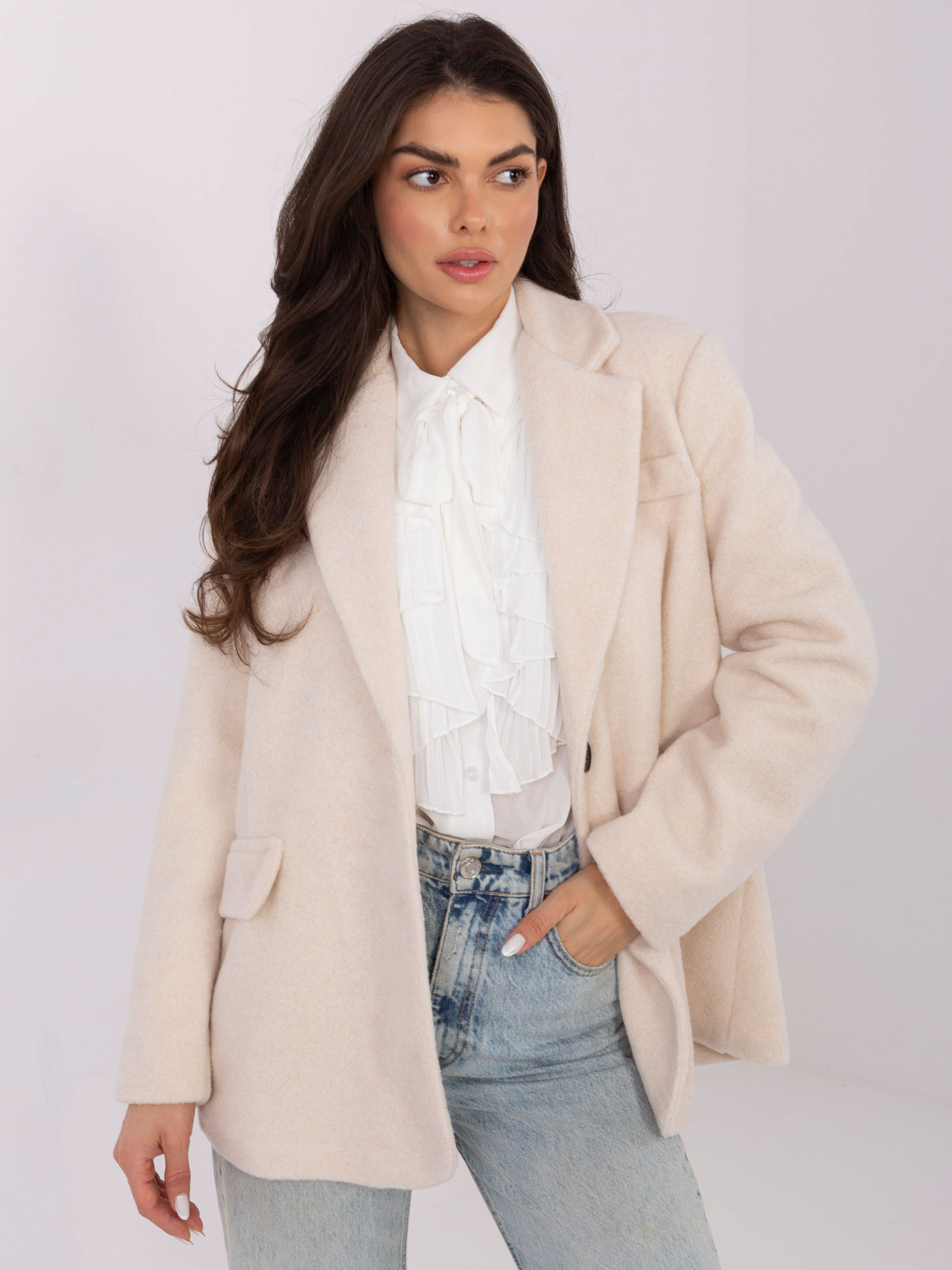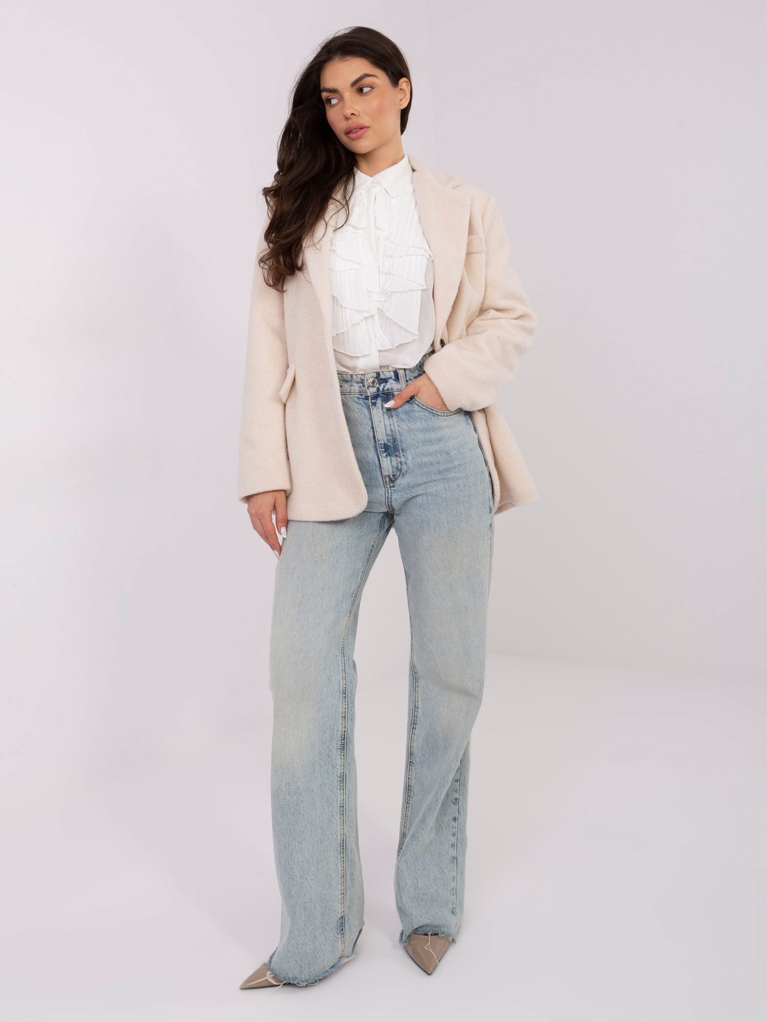 Jasnobeżowy damski płaszcz oversize RUE PARIS .
