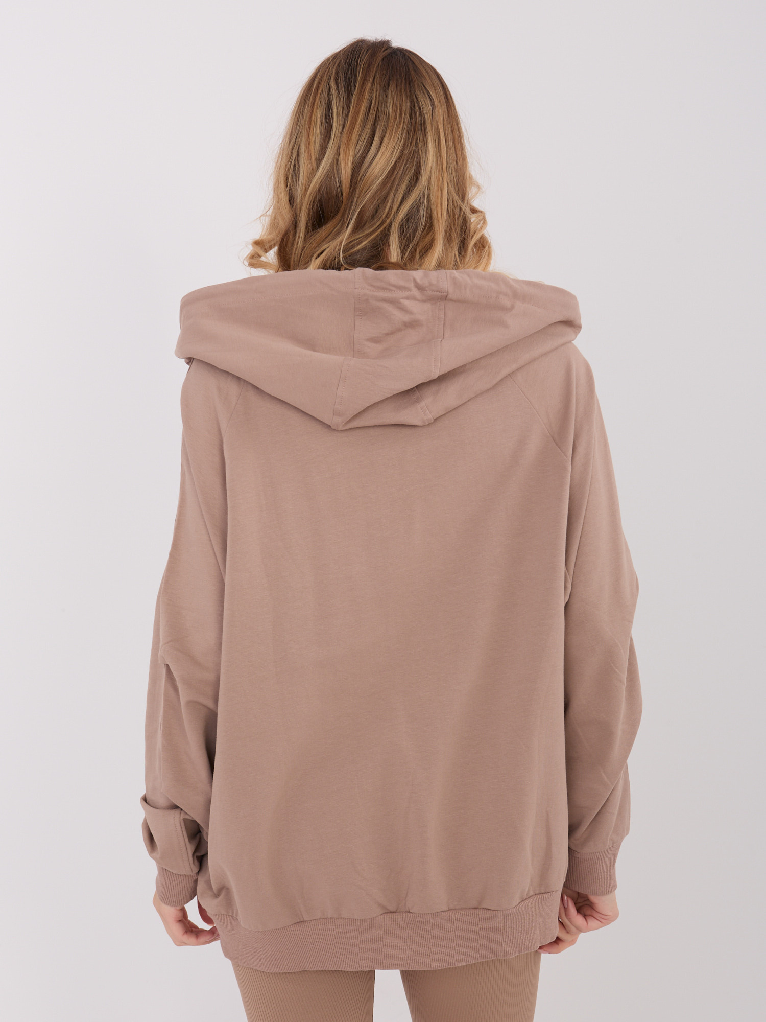 Ciemnobeżowa bawełniana bluza basic z kapturem .