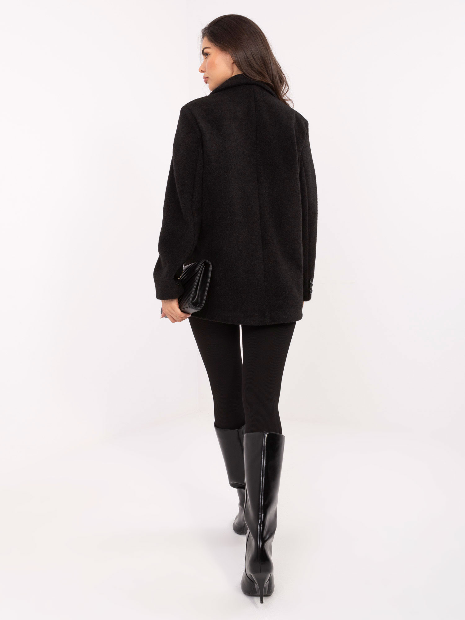 Czarny płaszcz boucle o kroju marynarki RUE PARIS .