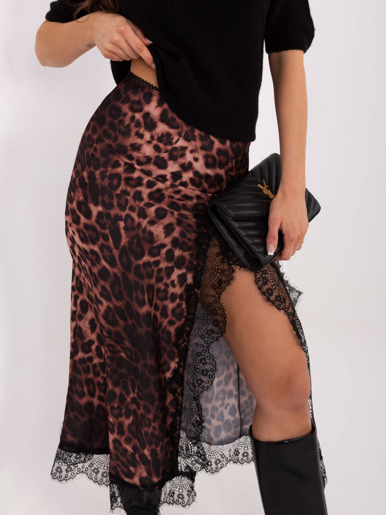 Wymiary spódnicy w rozmiarze one size mierzone na płasko: szerokość w pasie - 31 cm (na płasko), szerokość w pasie - 43 cm (po rozciągnięciu), szerokość w biodrach - 46 cm, długość całkowita - 94 cm.