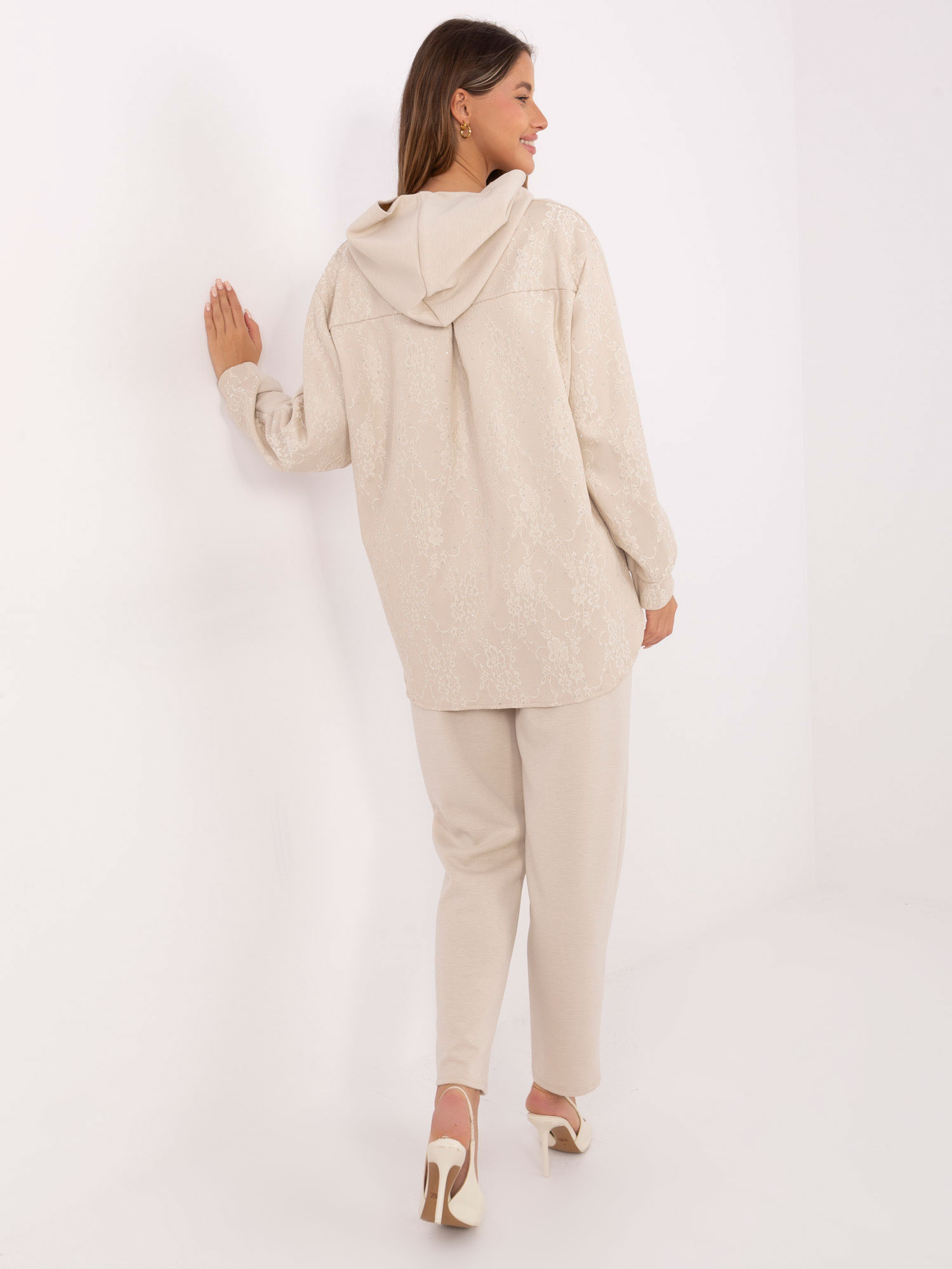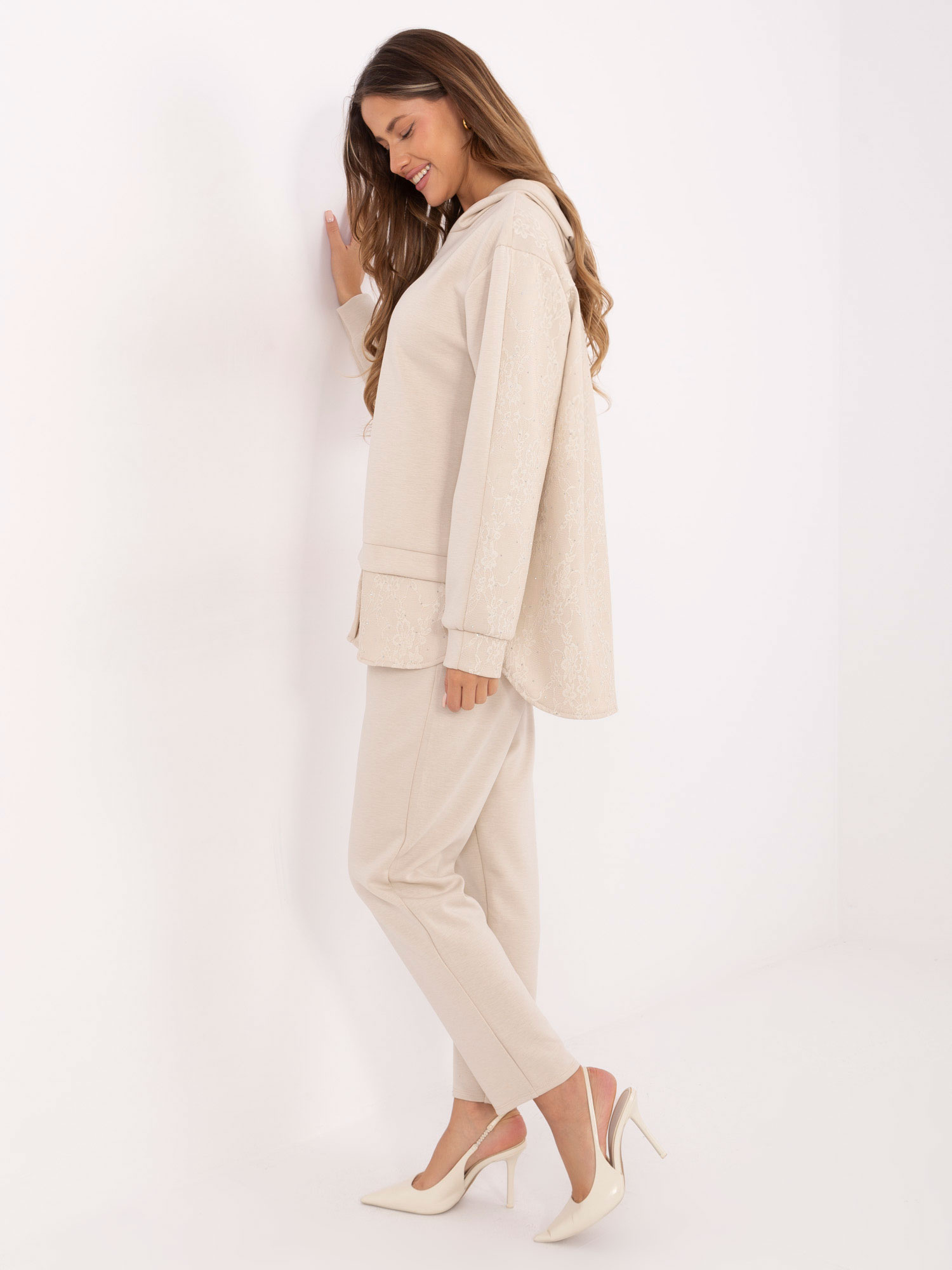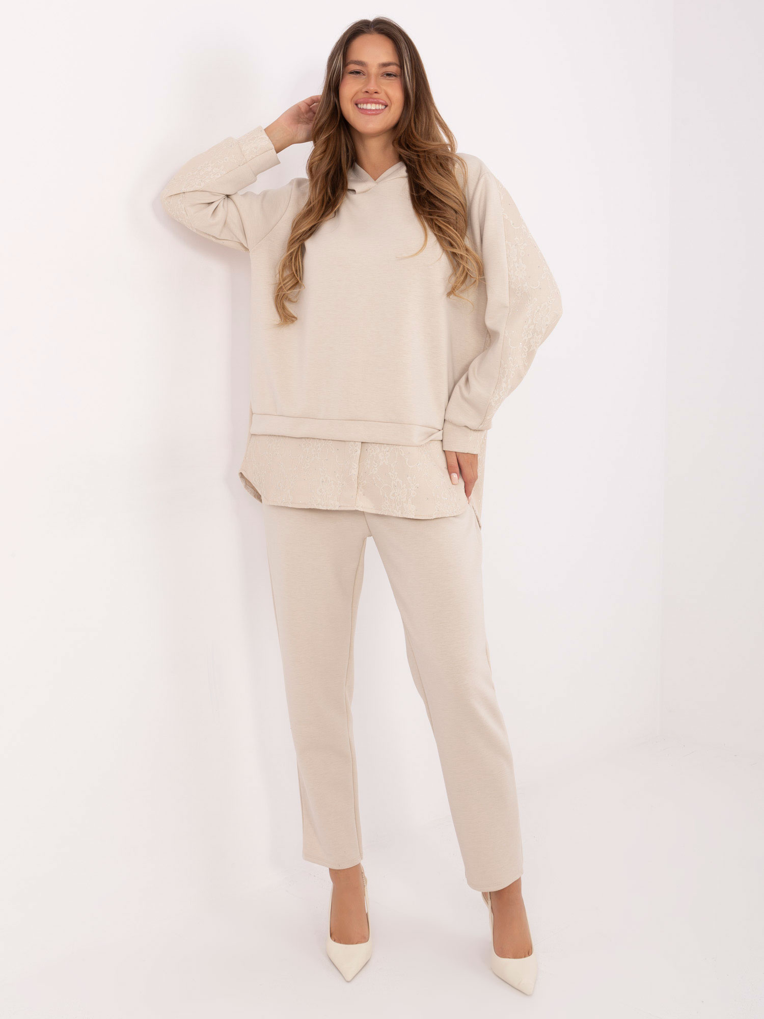 Jasnobeżowy damski komplet z bluzą z kapturem