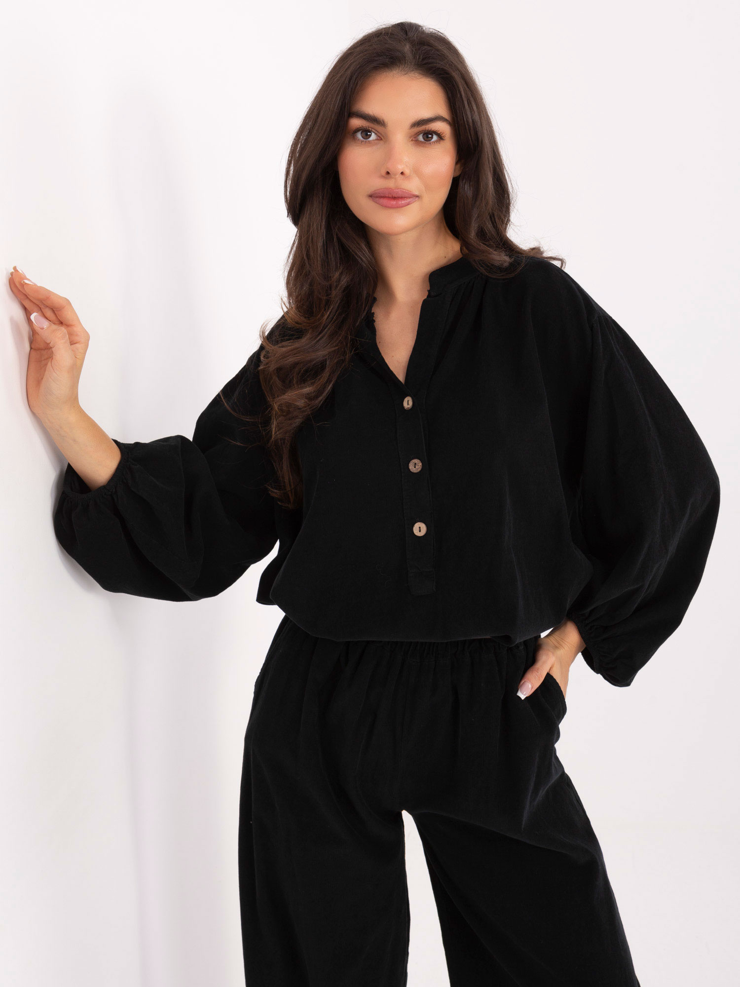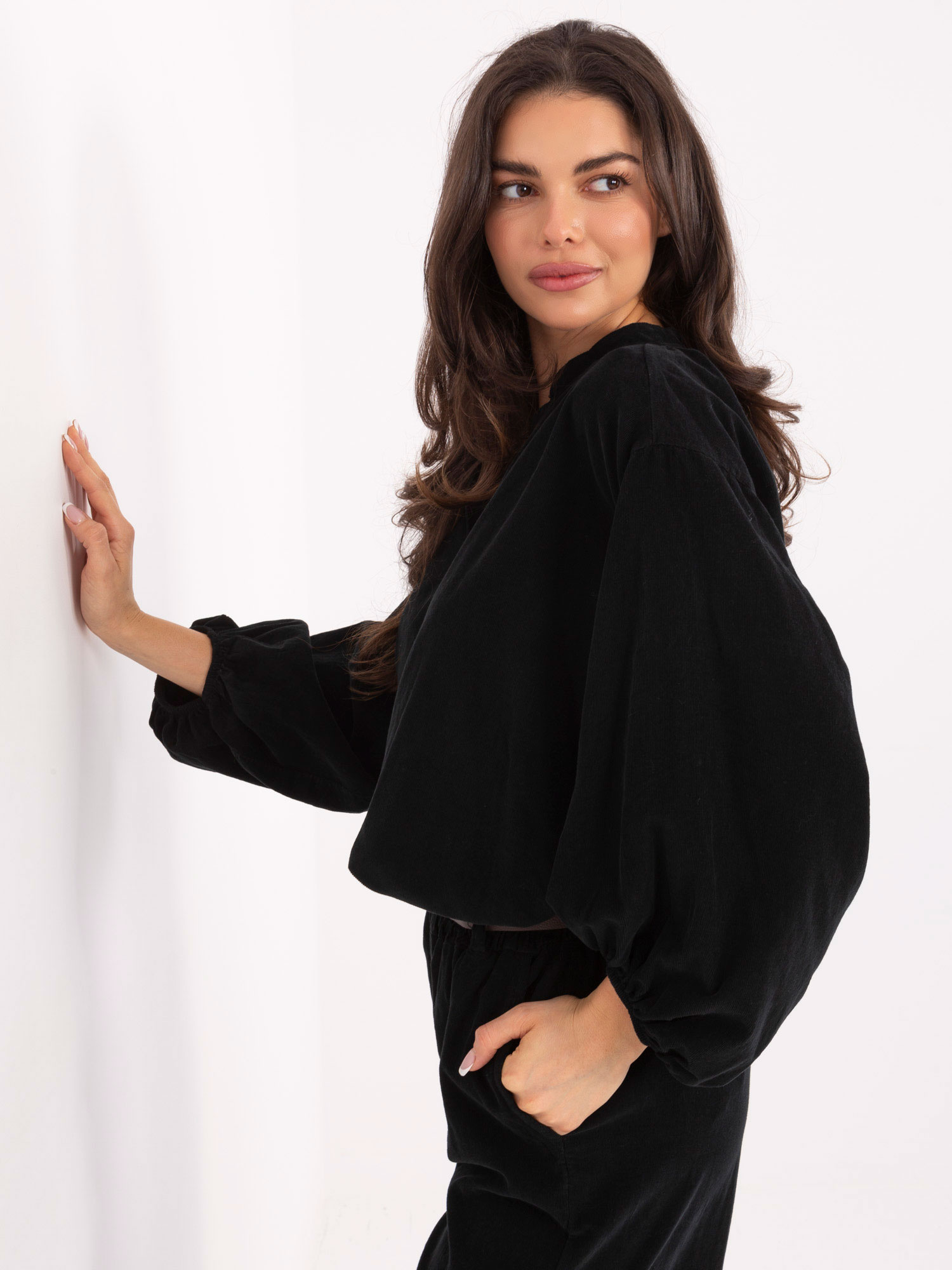 Czarna sztruksowa bluzka z bufiastym rękawem