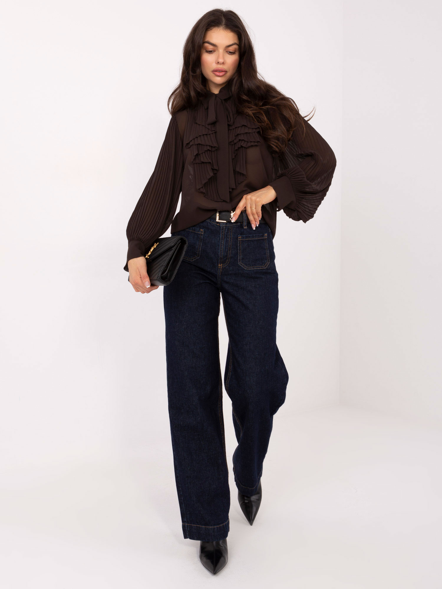 Wymiary bluzki w rozmiarze one size mierzone na płasko: szerokość pod pachami - 53 cm, długość całkowita - 65 cm, szerokość w biodrach - 54 cm, długość rękawa - 61 cm.