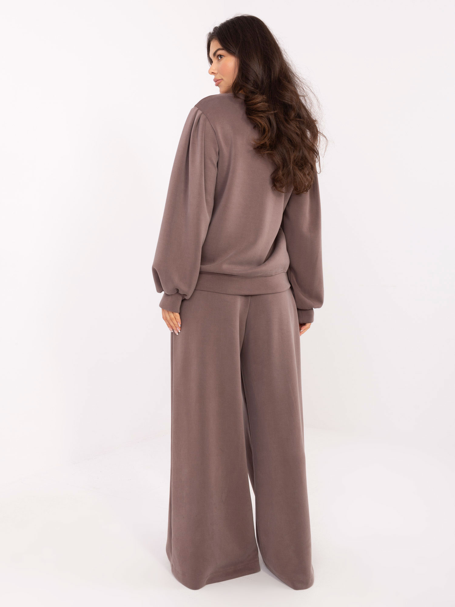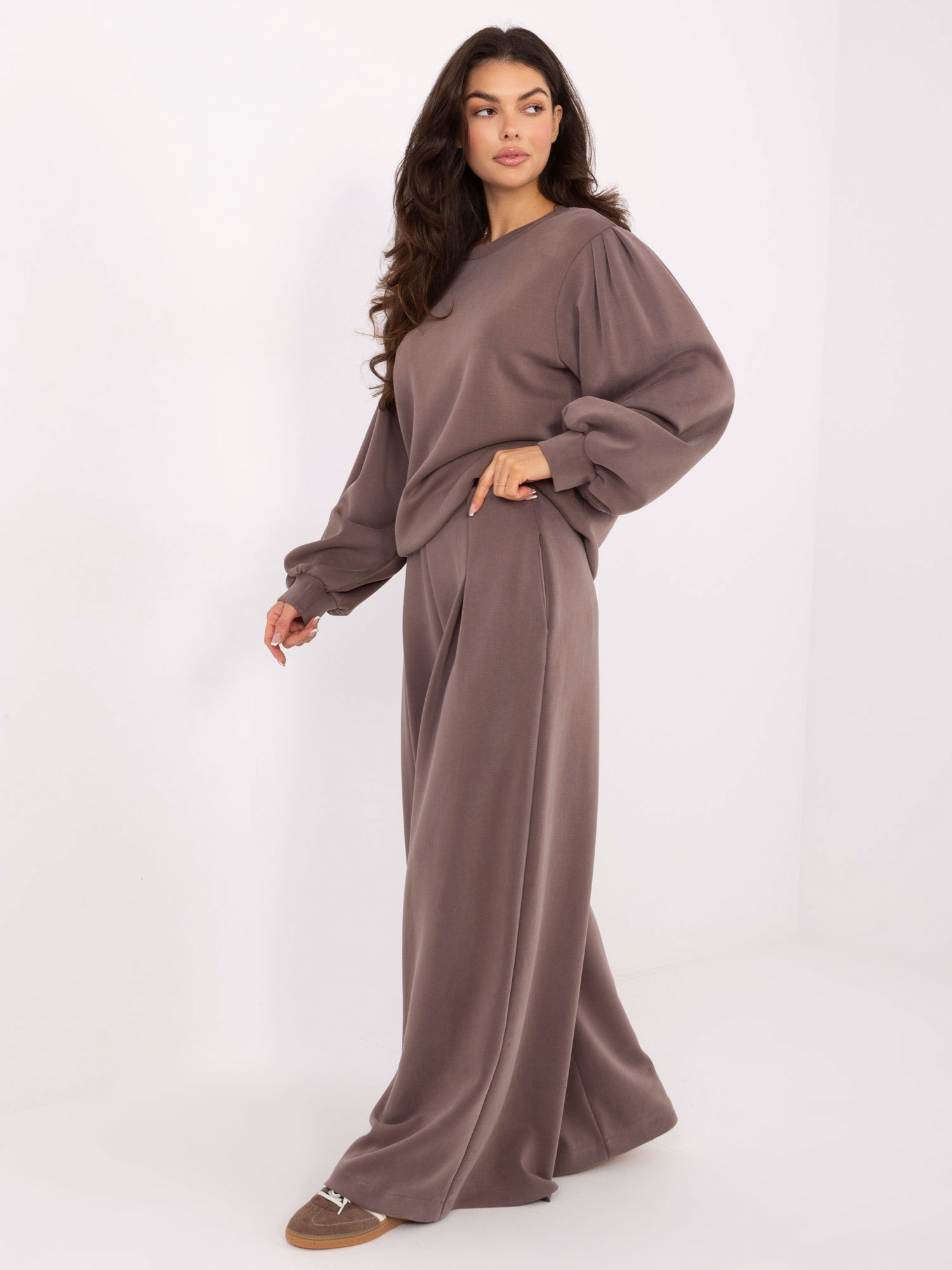 Ciemnobeżowe szerokie spodnie od kompletu