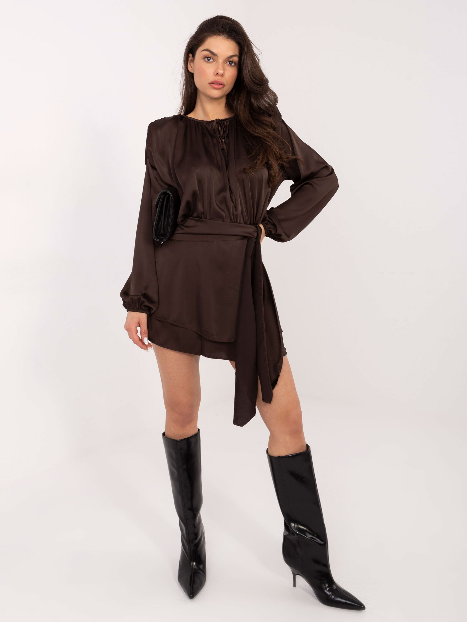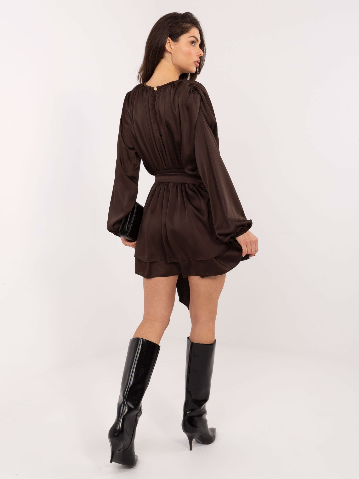 Czekoladowy krótki kombinezon z wiązaniem w talii