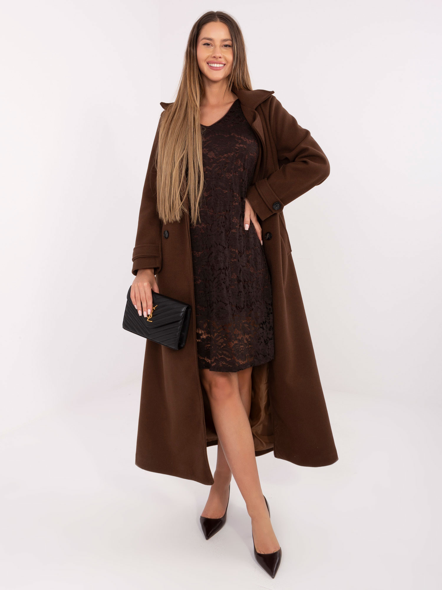Brązowa koronkowa sukienka z dekoltem na plecach