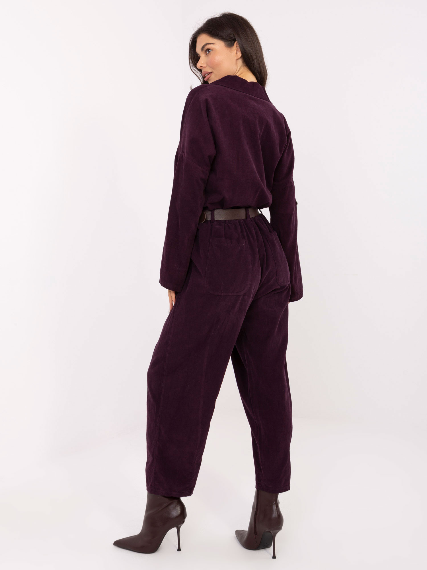 Ciemnofioletowe sztruksowe spodnie z paskiem