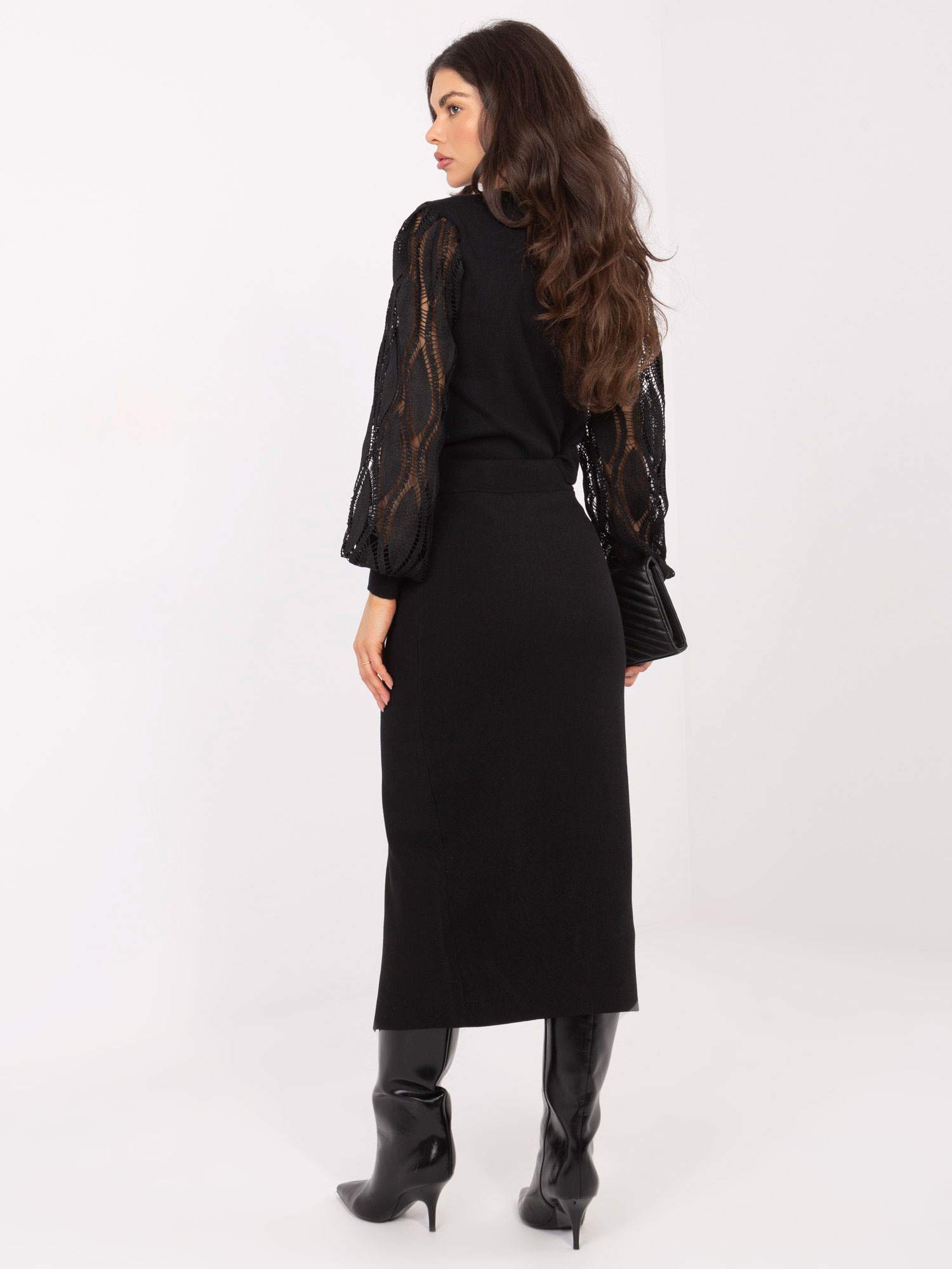 Wymiary spódnicy w rozmiarze one size mierzone na płasko: szerokość w pasie - 29 cm (na płasko), szerokość w pasie - 52 cm (po rozciągnięciu), szerokość w biodrach - 40 cm, długość całkowita - 86 cm.
