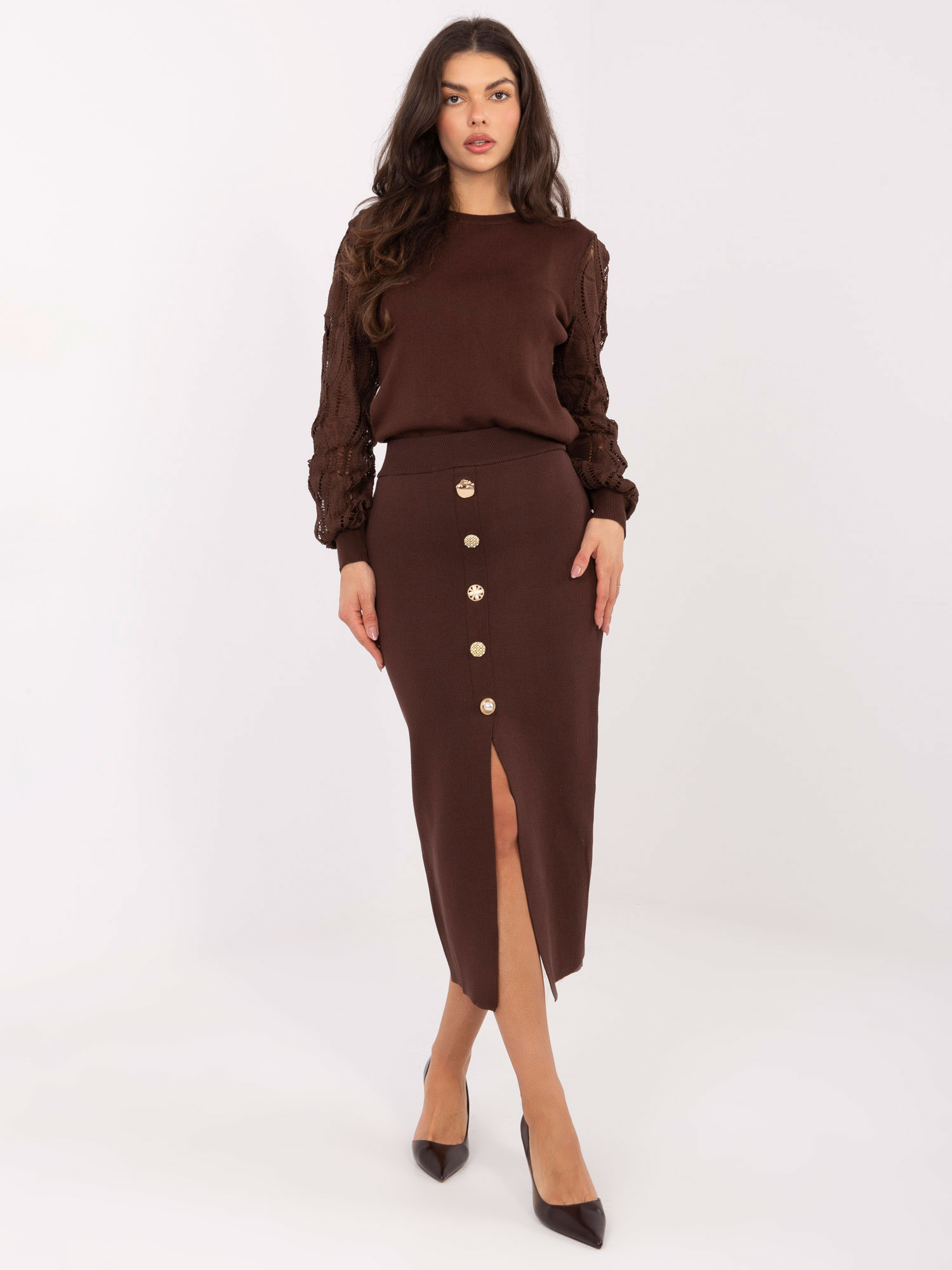 Wymiary spódnicy w rozmiarze one size mierzone na płasko: szerokość w pasie - 29 cm (na płasko), szerokość w pasie - 52 cm (po rozciągnięciu), szerokość w biodrach - 40 cm, długość całkowita - 86 cm.