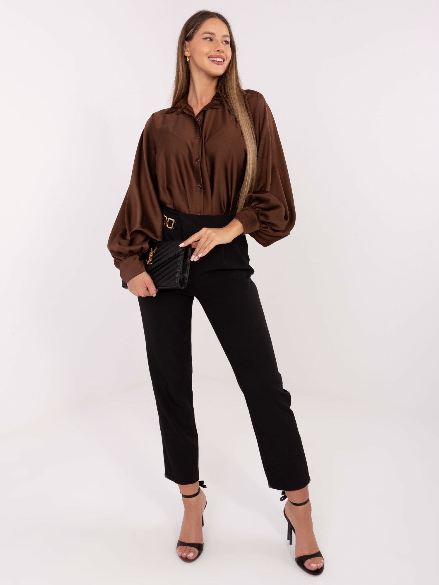Brązowa elegancka koszula z bufiastymi rękawami Cristina