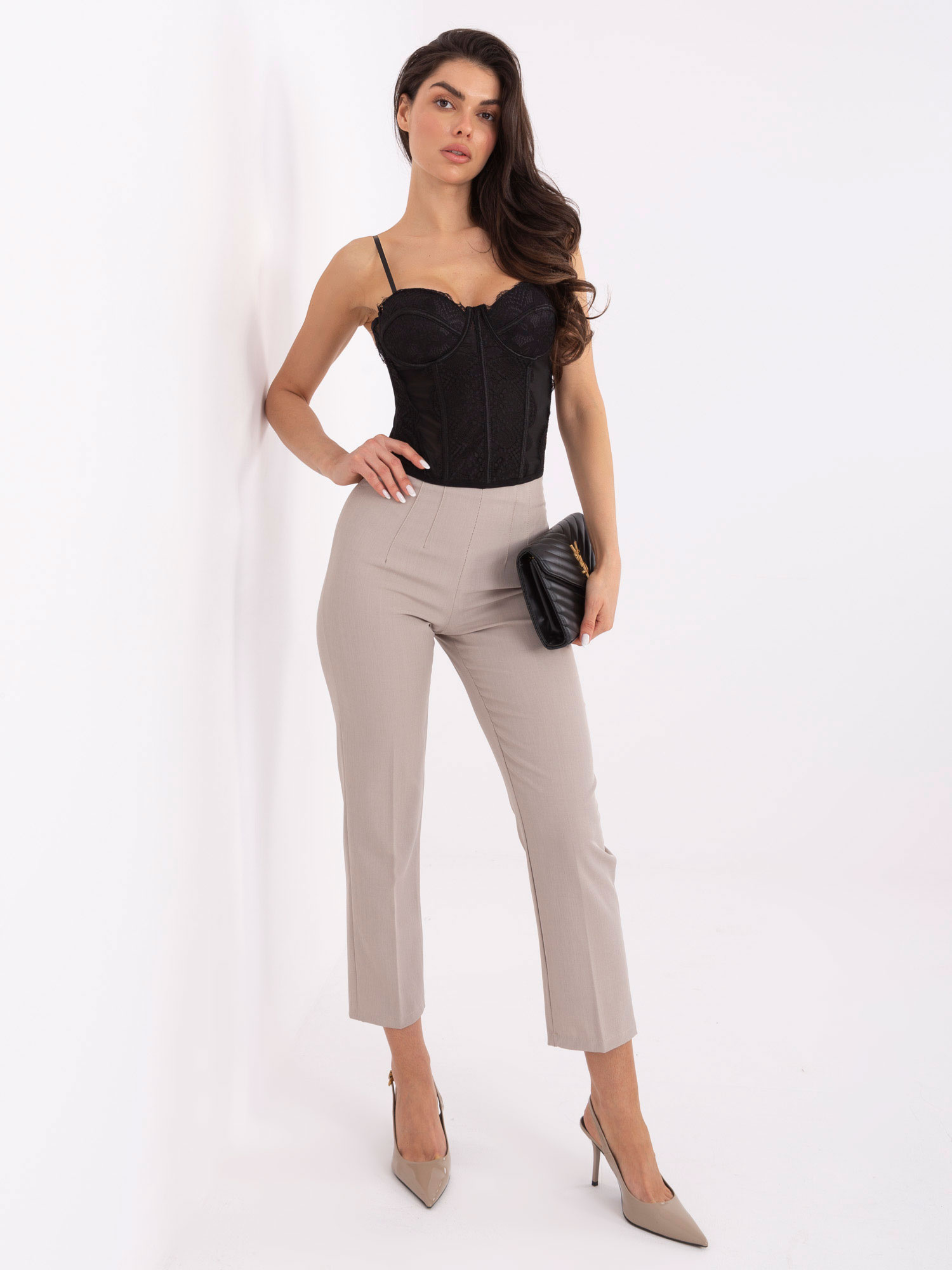 Modelka ma na sobie rozmiar S/M. Wymiary modelki: wzrost 173 cm, biust 85 cm, talia 62 cm, biodra 95 cm.