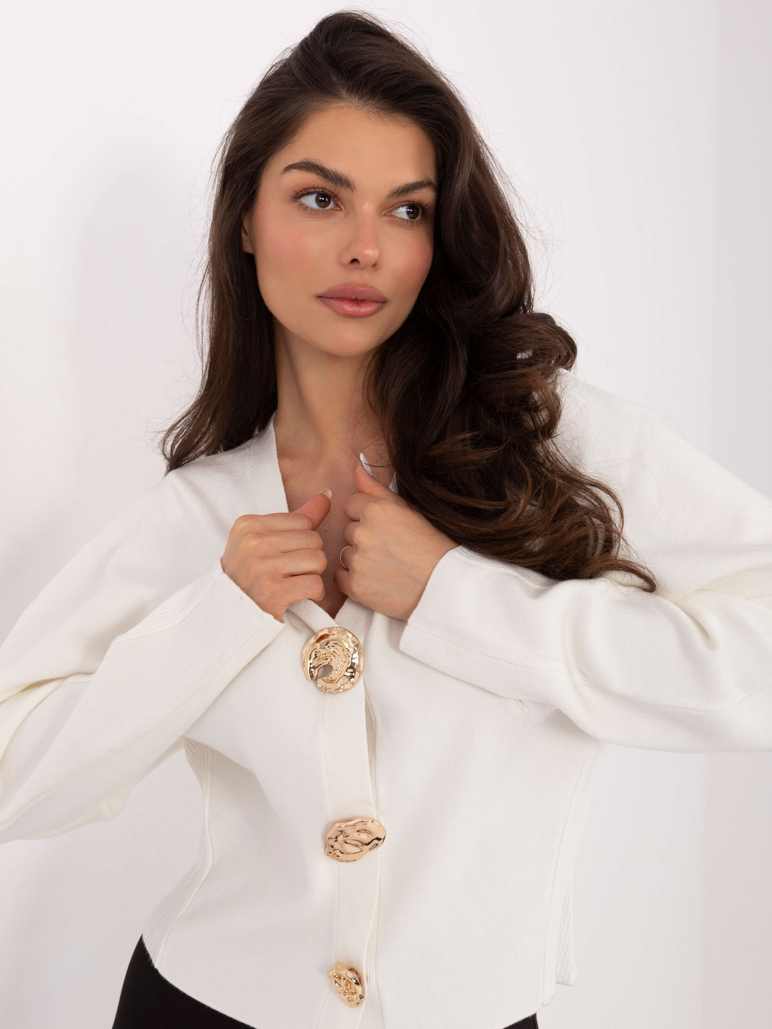 Ecru elegancki sweter z ozdobnymi guzikami .