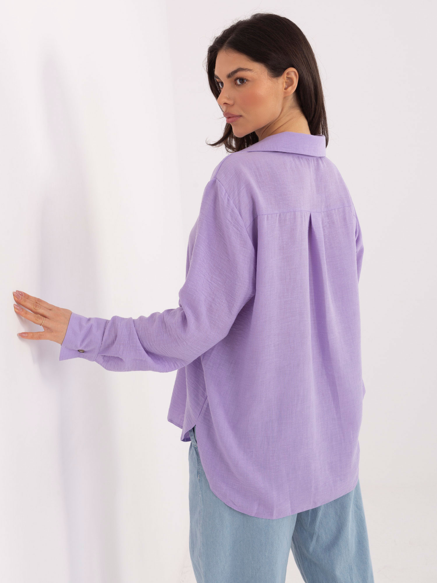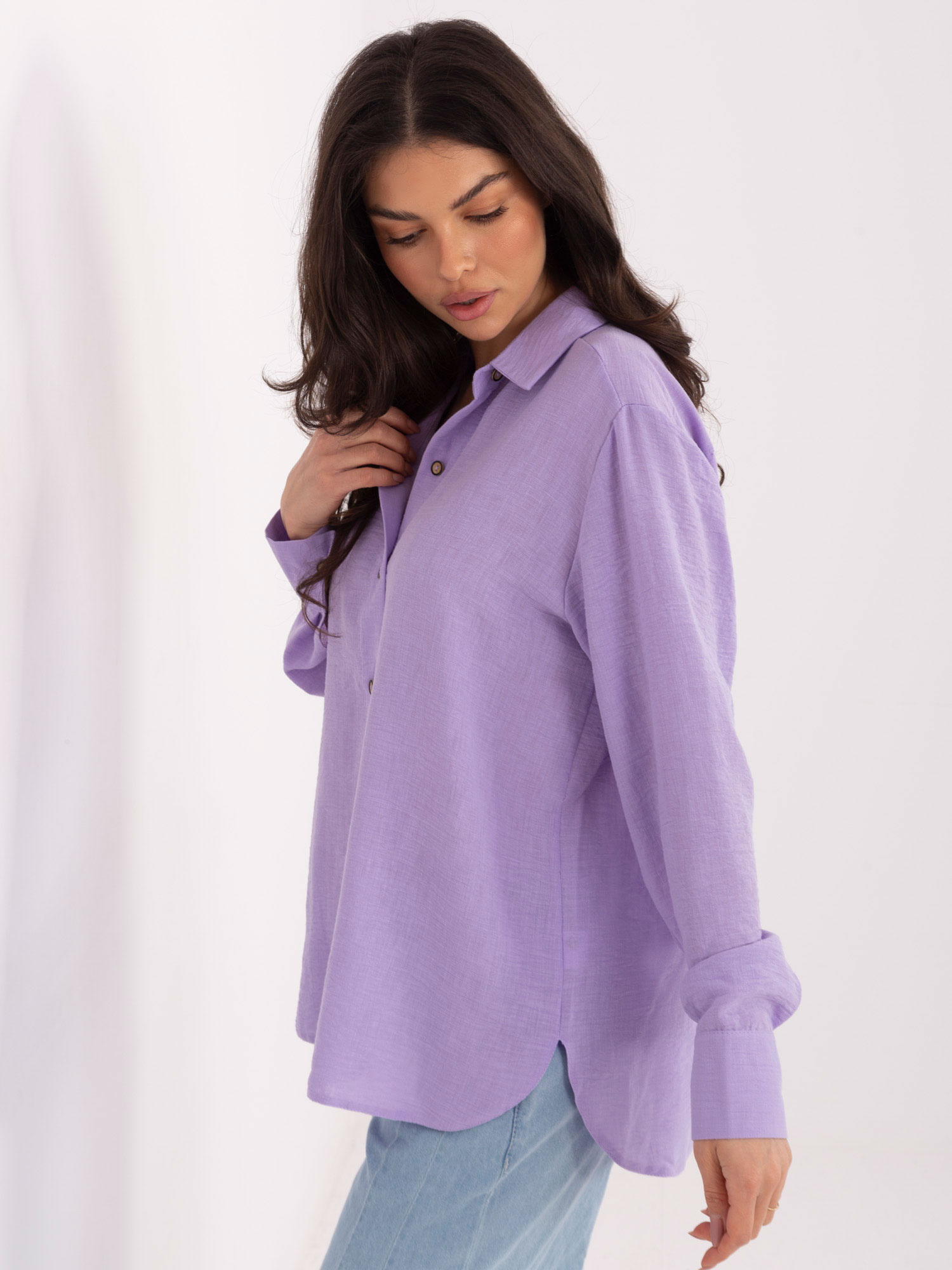 Liliowa rozpinana koszula z kołnierzykiem .