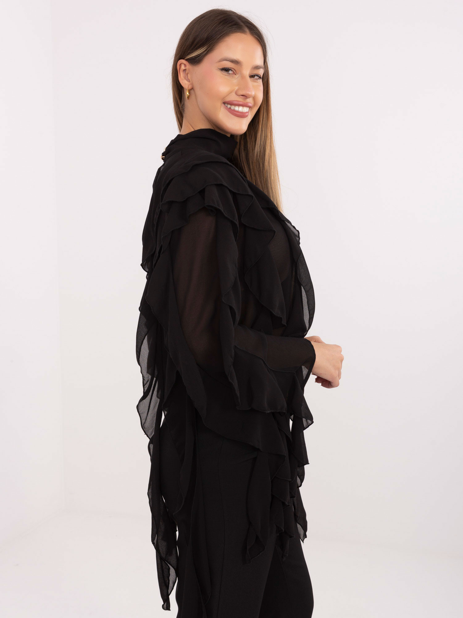 Wymiary bluzki w rozmiarze one size mierzone na płasko: szerokość pod pachami - 72 cm, długość całkowita - 59 cm, szerokość na dole - 72 cm, długość rękawa - 63 cm.