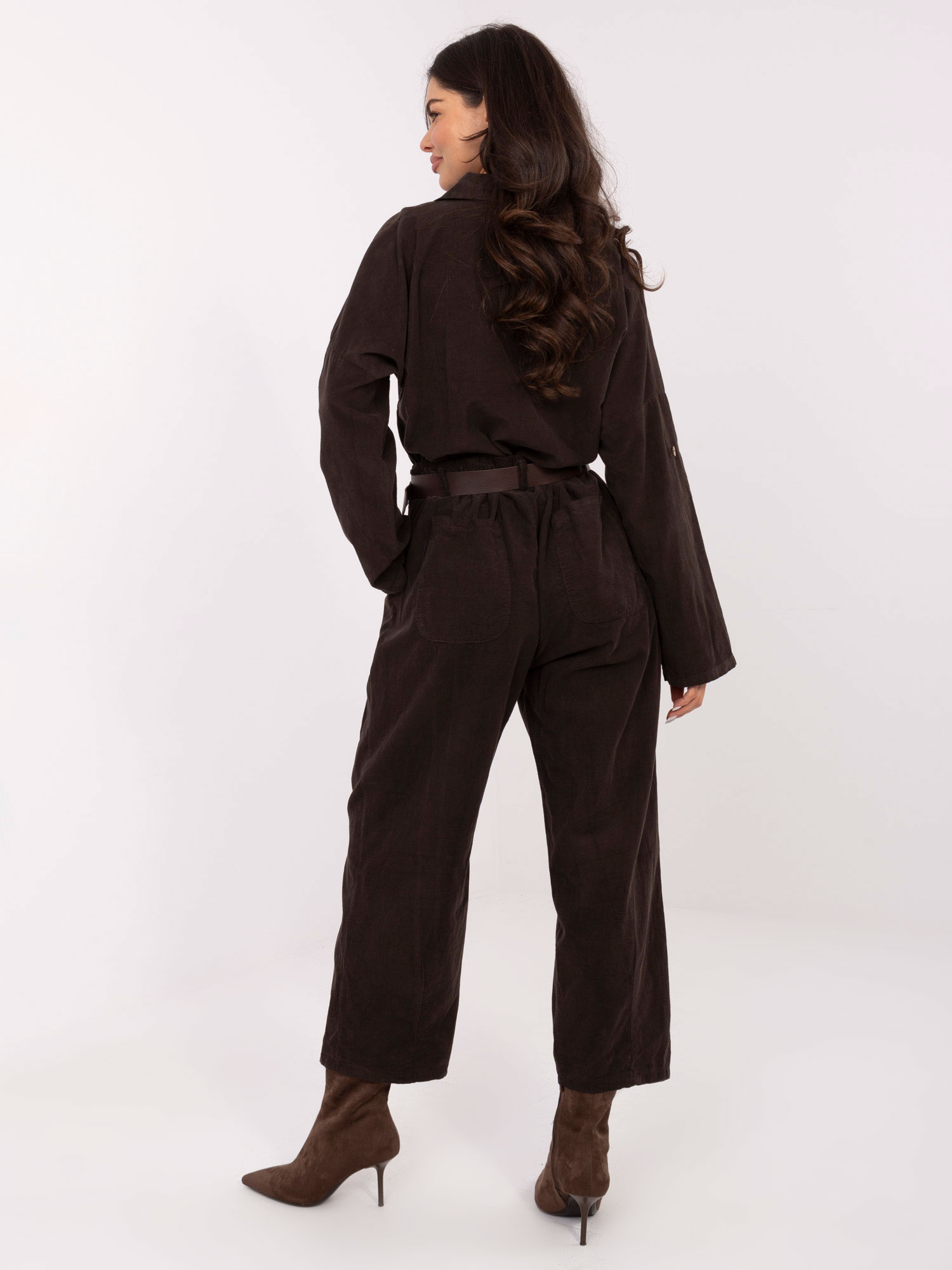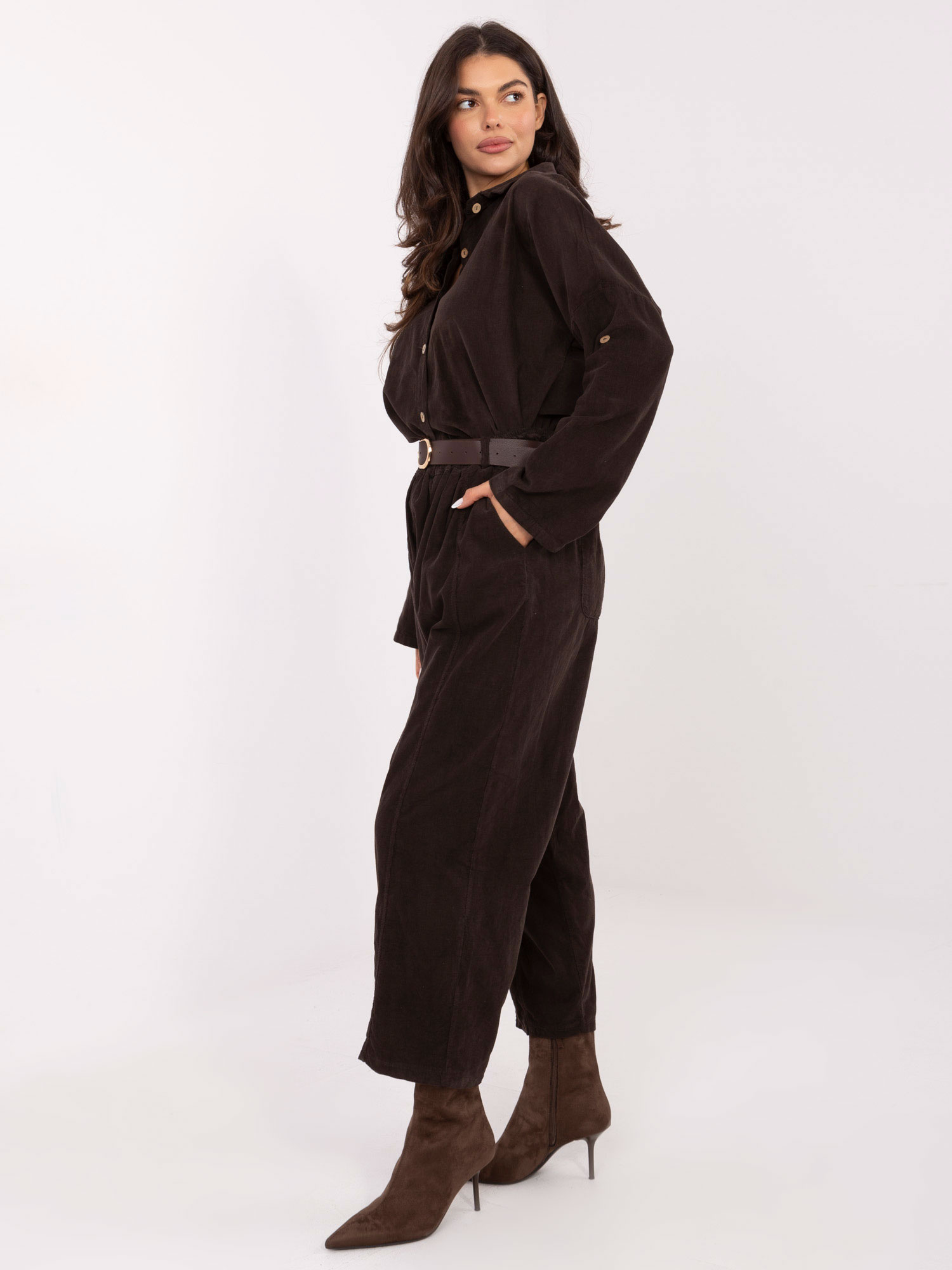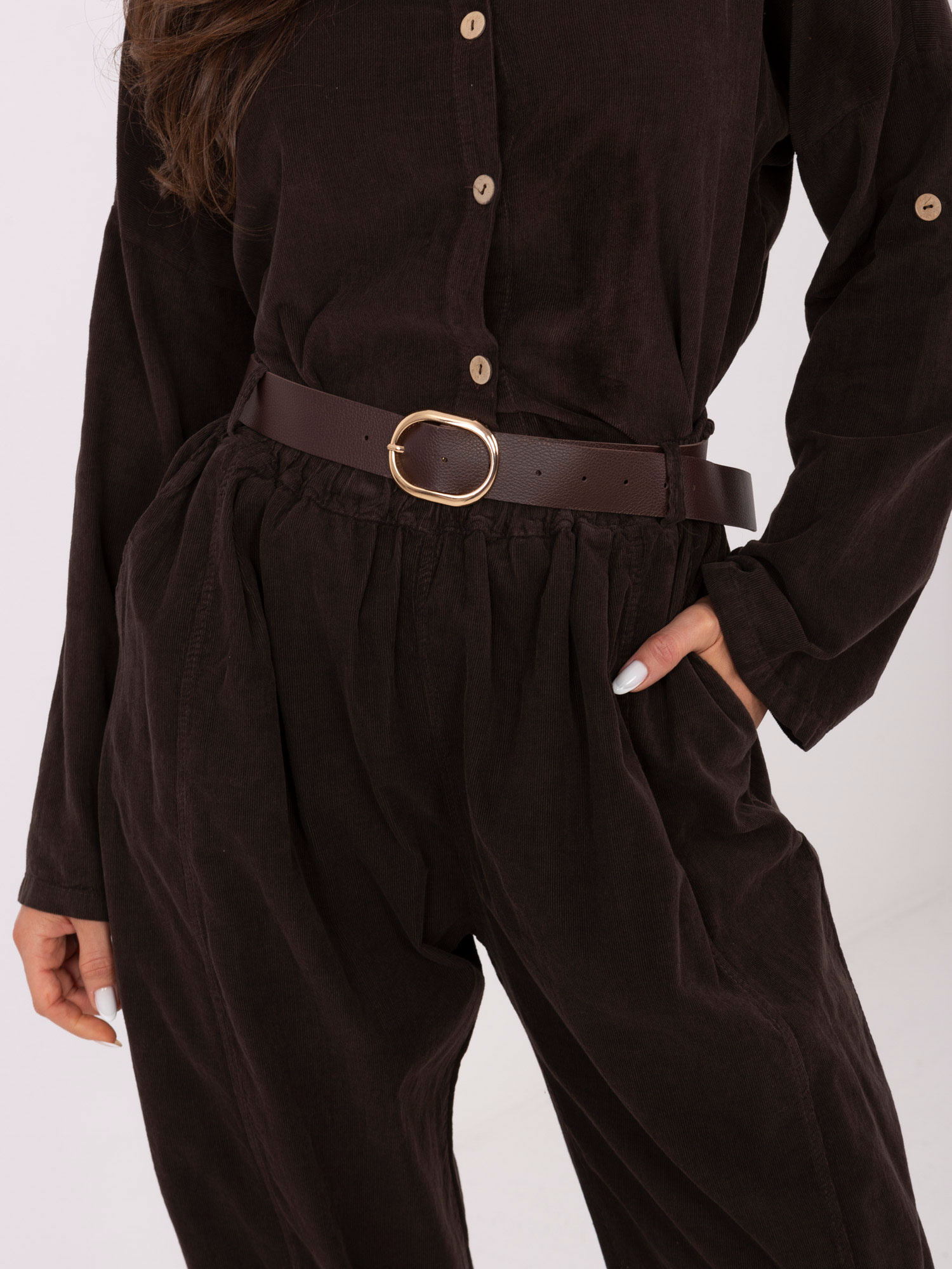 Ciemnobrązowe sztruksowe spodnie z paskiem