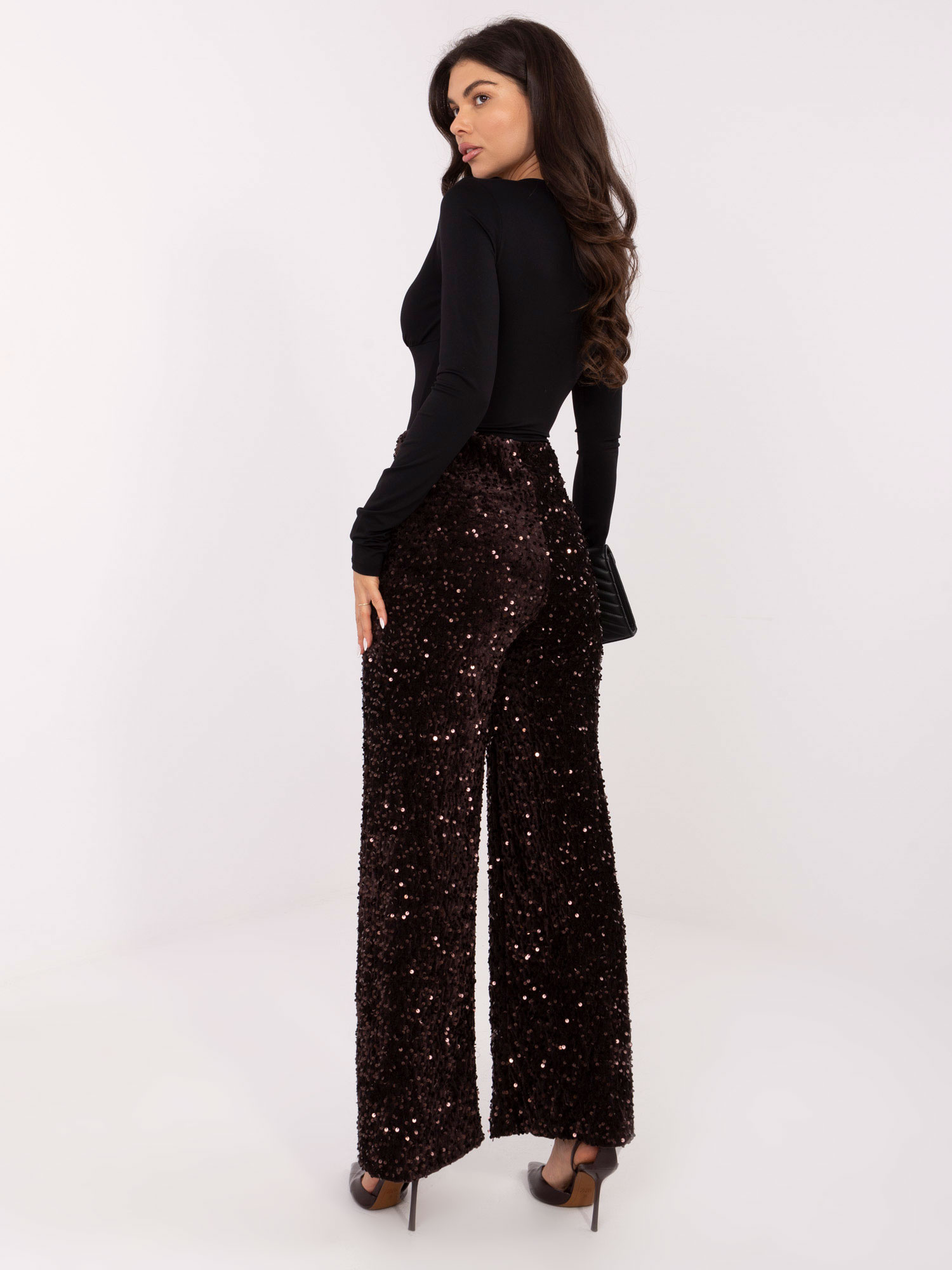 Ciemnobrązowe wizytowe spodnie z cekinami