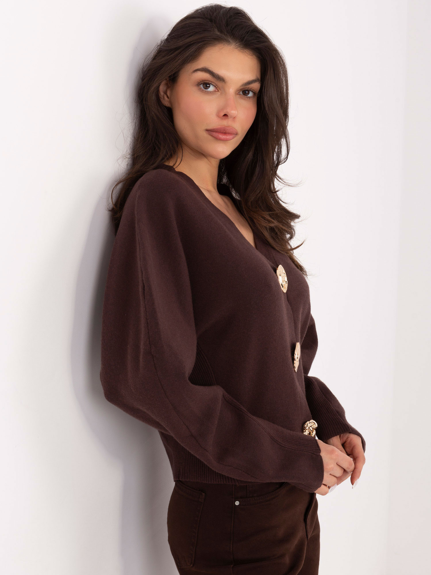 Czekoladowy sweter z zapięciem na zatrzaski