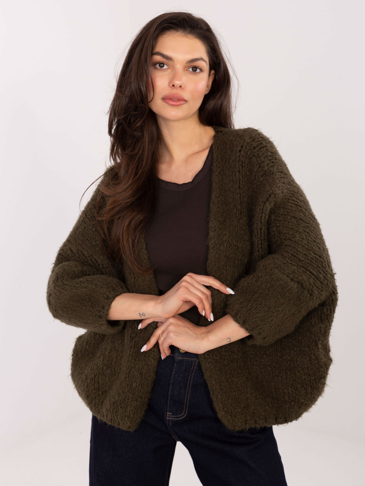 Wymiary swetra w rozmiarze one size mierzone na płasko: szerokość pod pachami - 89 cm, szerokość w biodrach - 75 cm, długość rękawa - 20 cm (od szwu), długość całkowita - 67 cm.