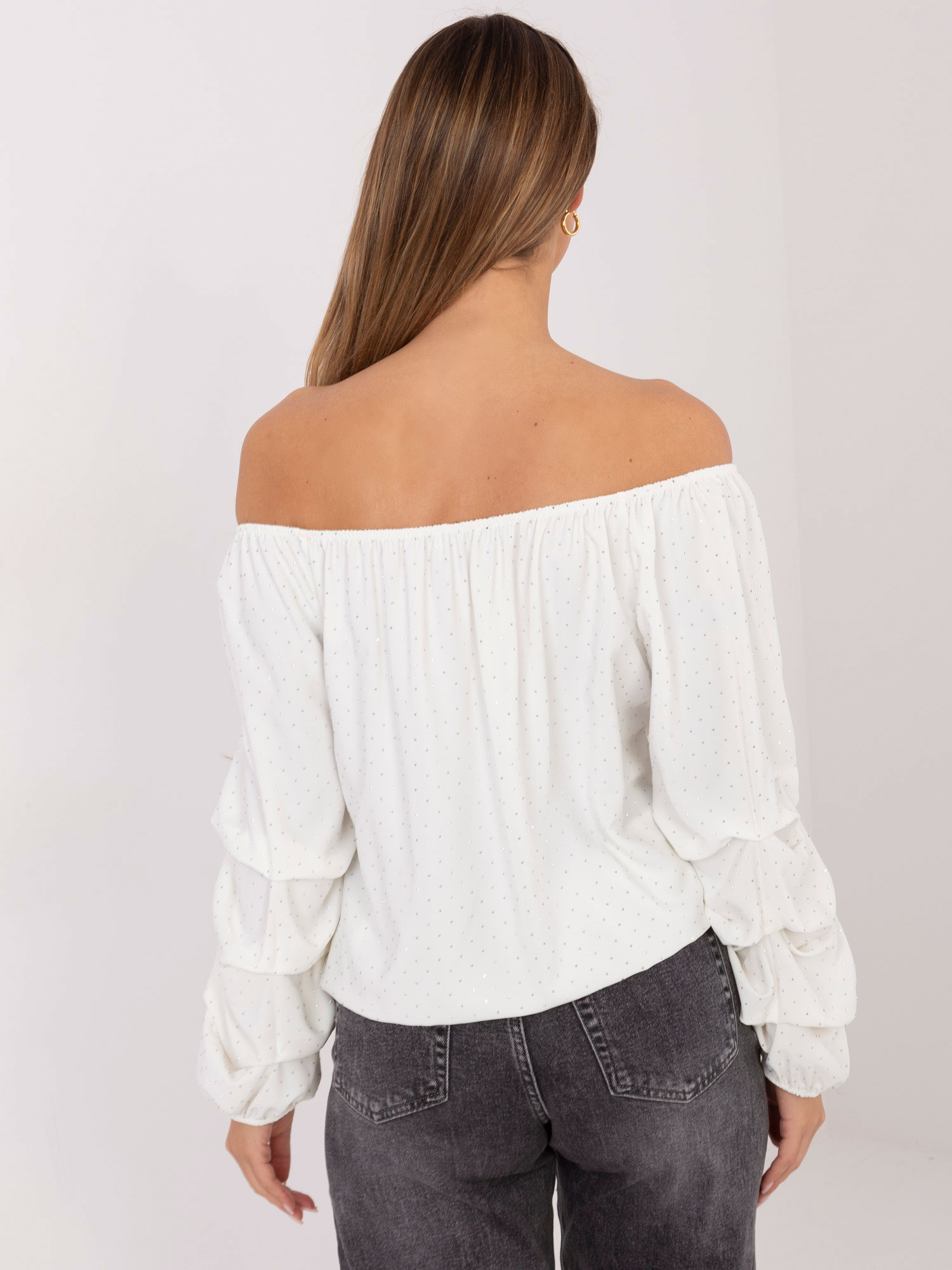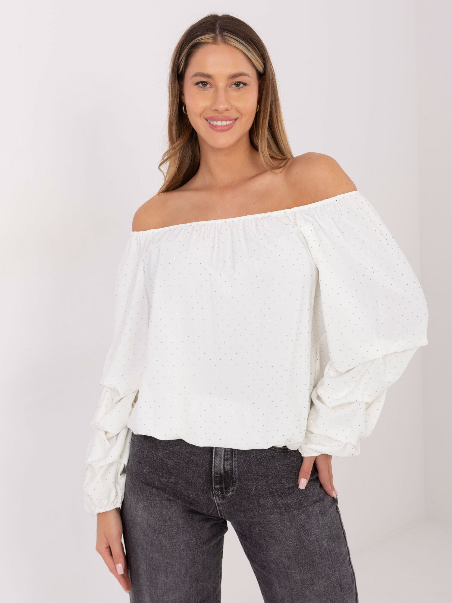 Ecru elegancka bluzka hiszpanka z dżetami .