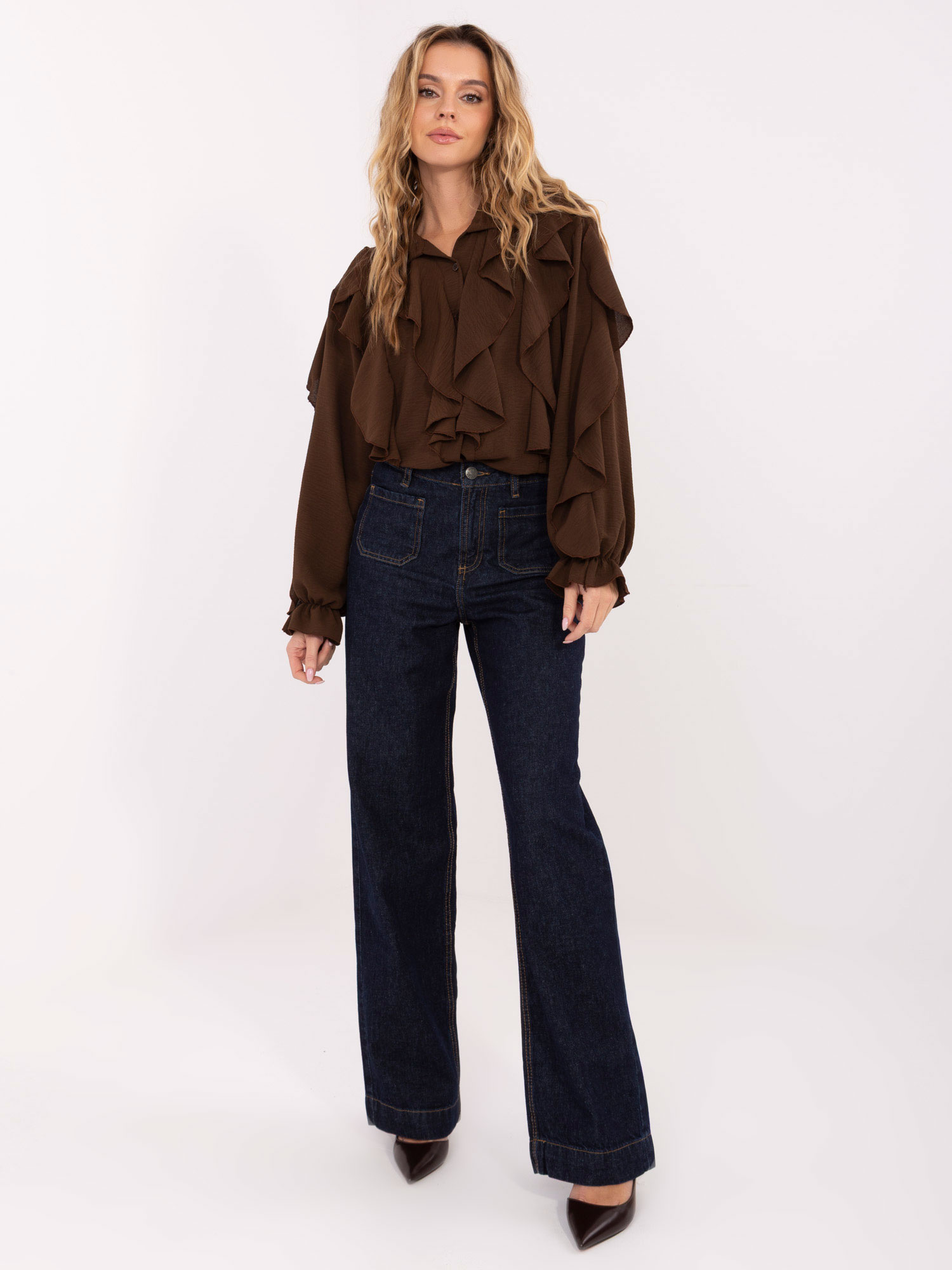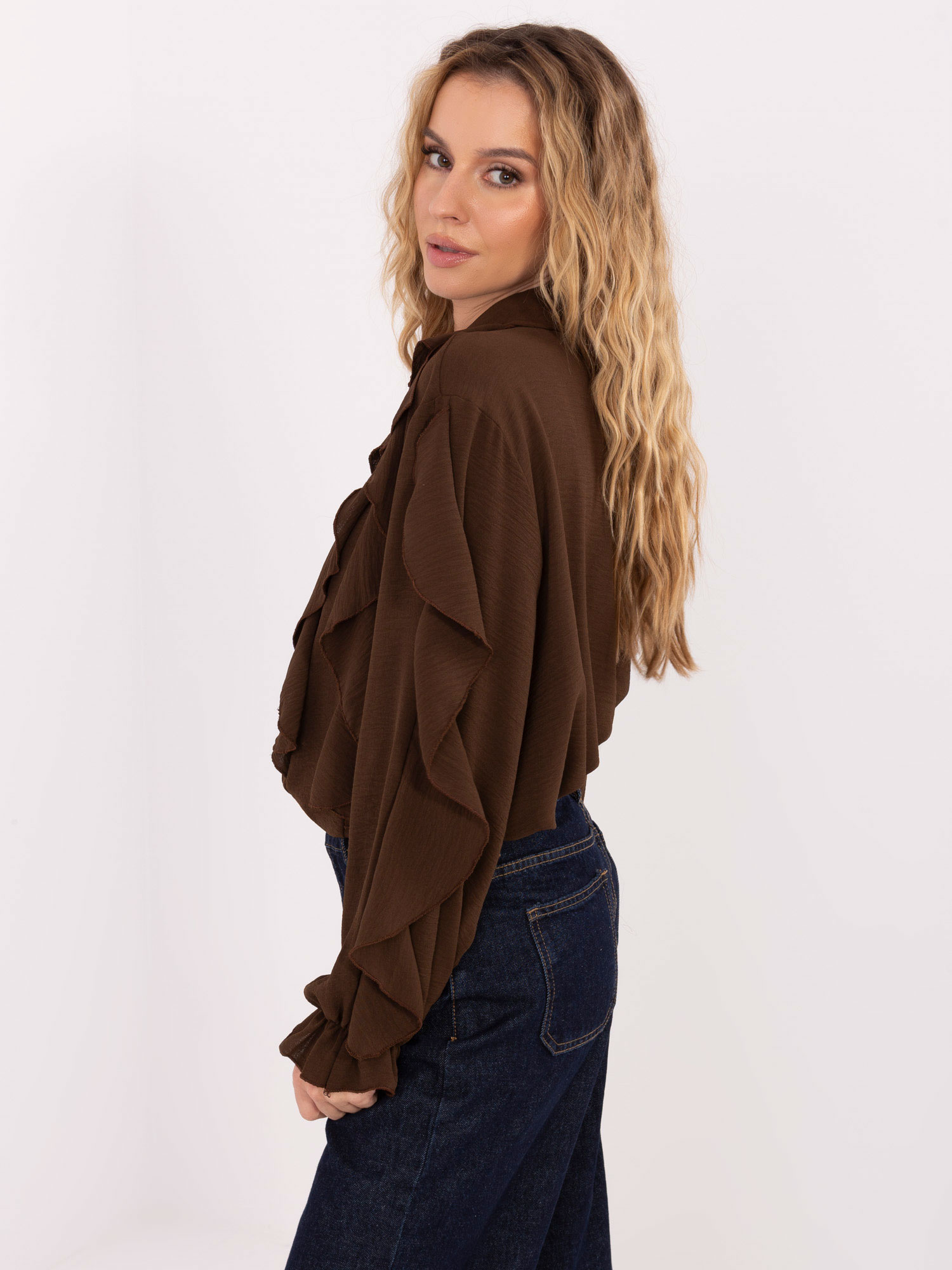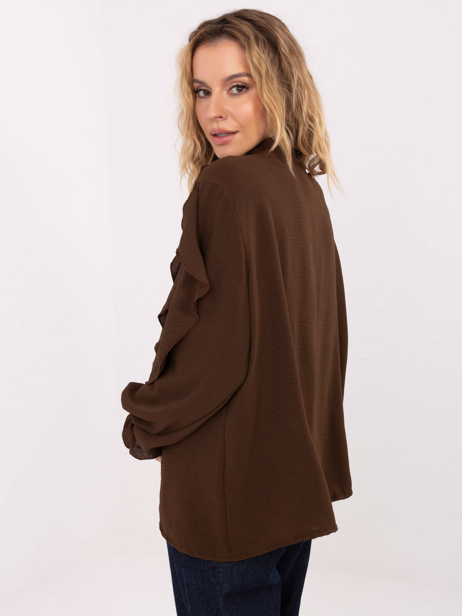 Wymiary koszuli w rozmiarze one size mierzone na płasko: szerokość pod pachami - 60 cm, długość całkowita - 67 cm, długość rękawa - 58 cm (od szwu), szerokość w biodrach - 63 cm.