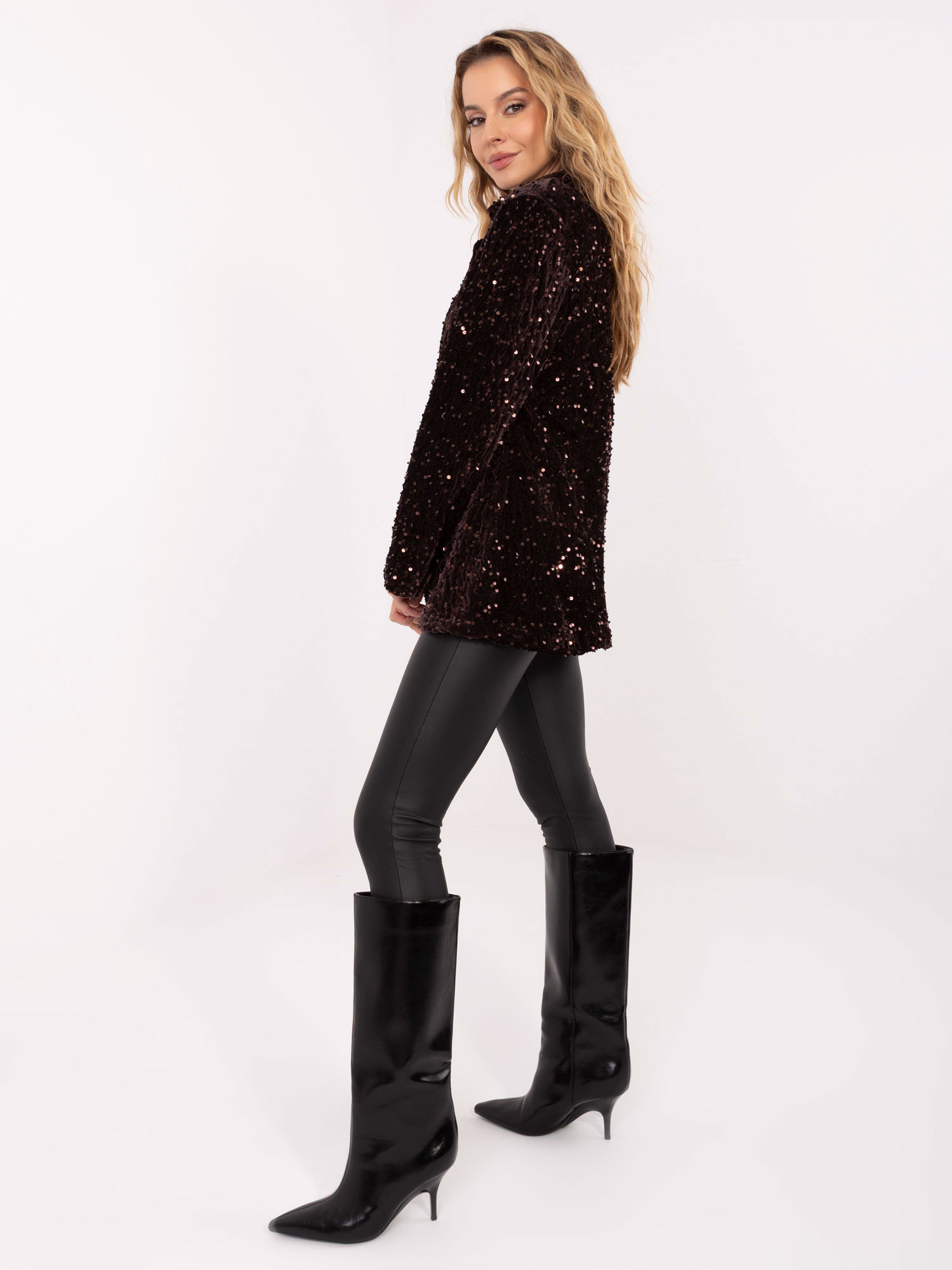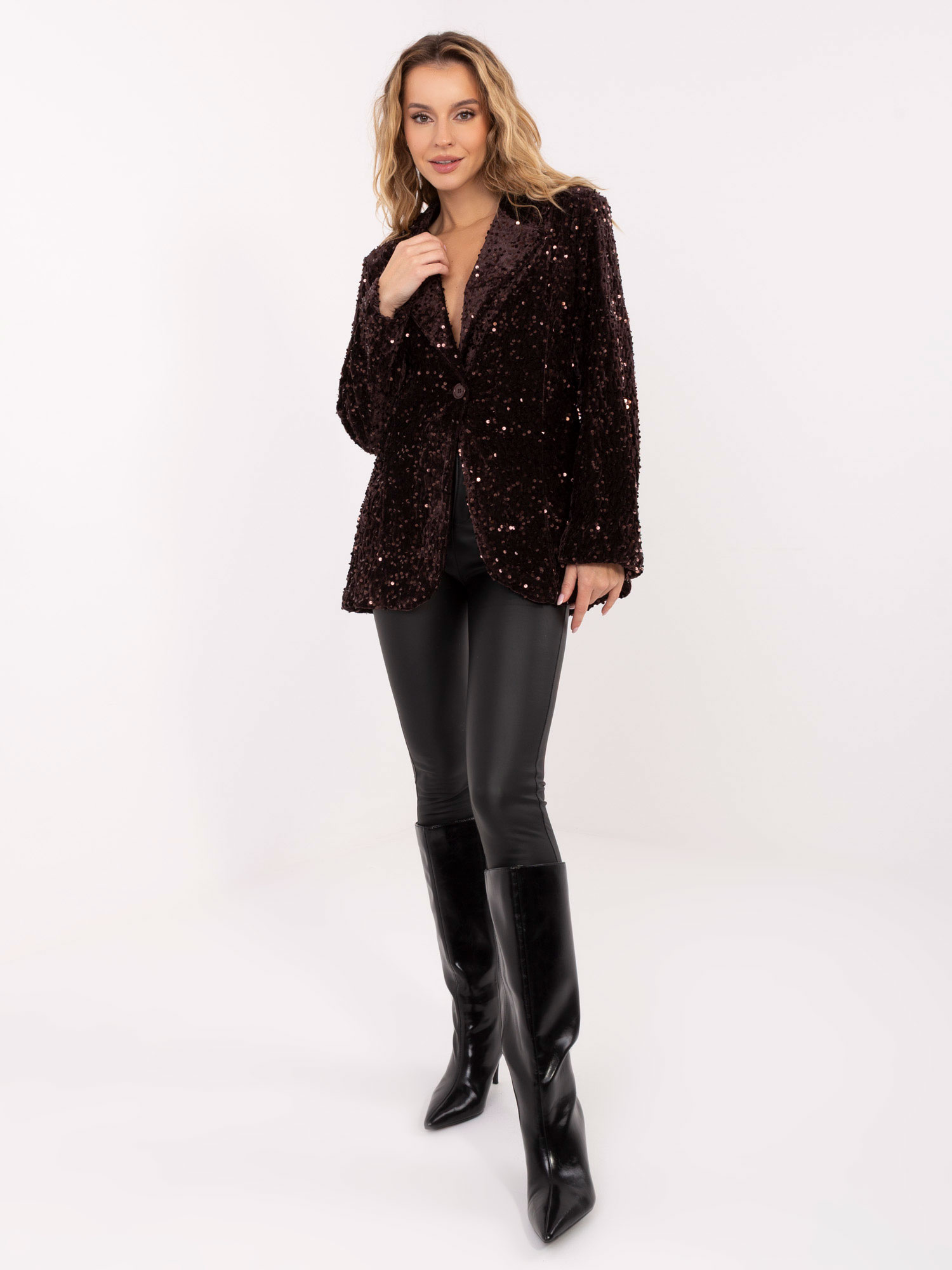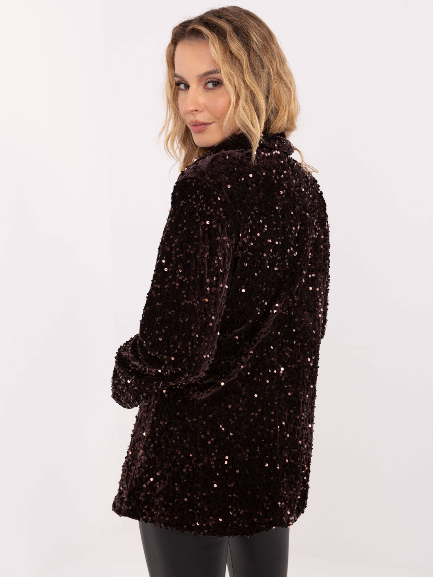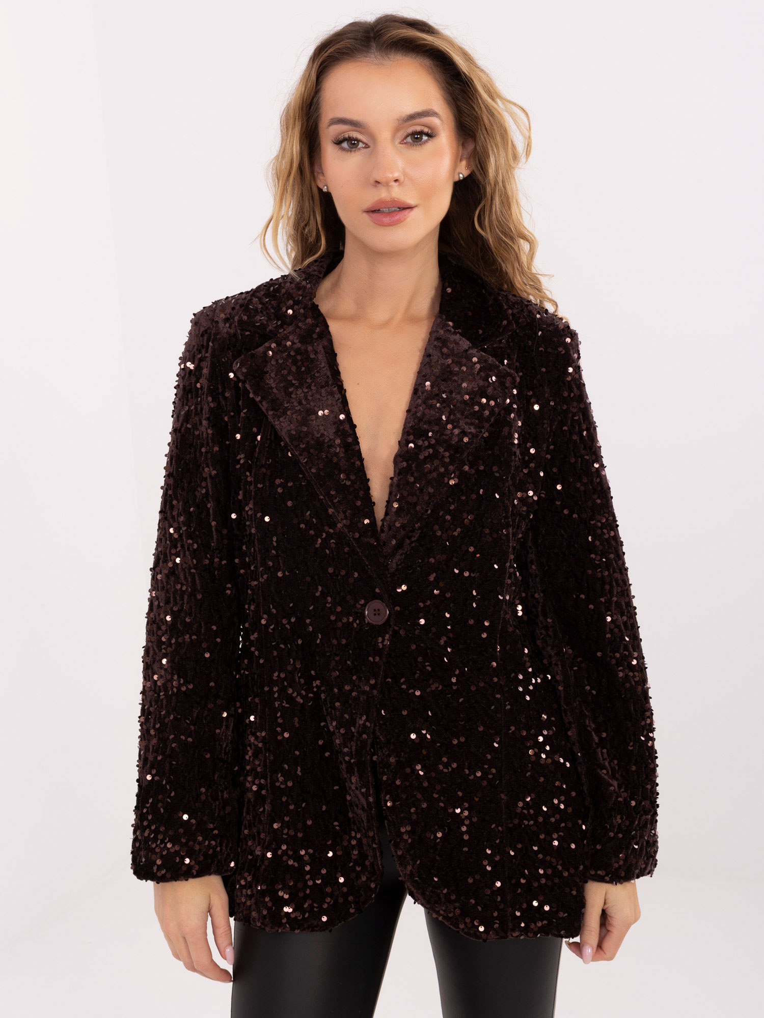 Ciemnobrązowa cekinowa marynarka z zapięciem na guzik RUE PARIS .