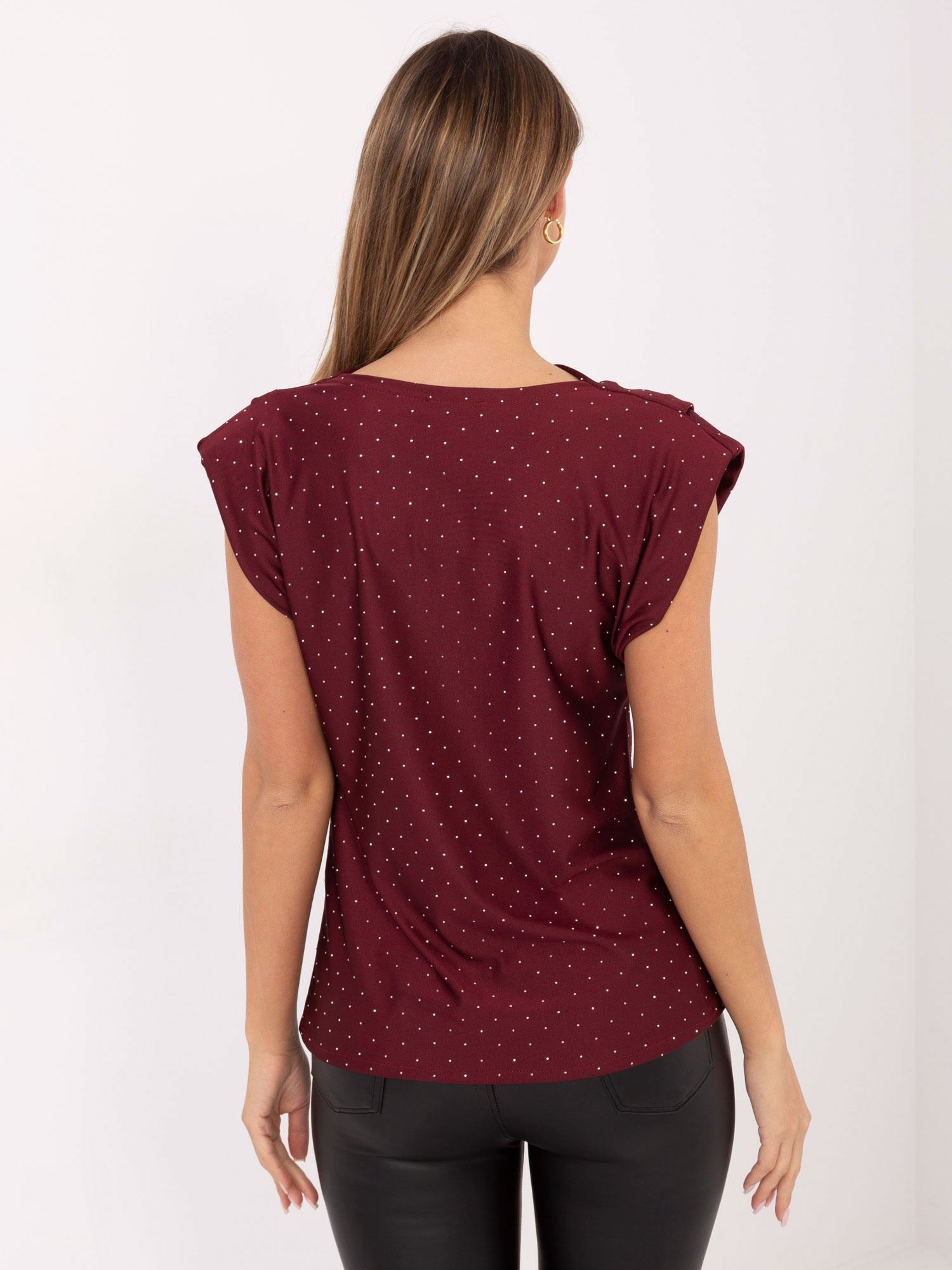 Wymiary bluzki w rozmiarze one size: szerokość pod pachami - 48 cm, szerokość na dole - 49 cm, długość całkowita - 66 cm.