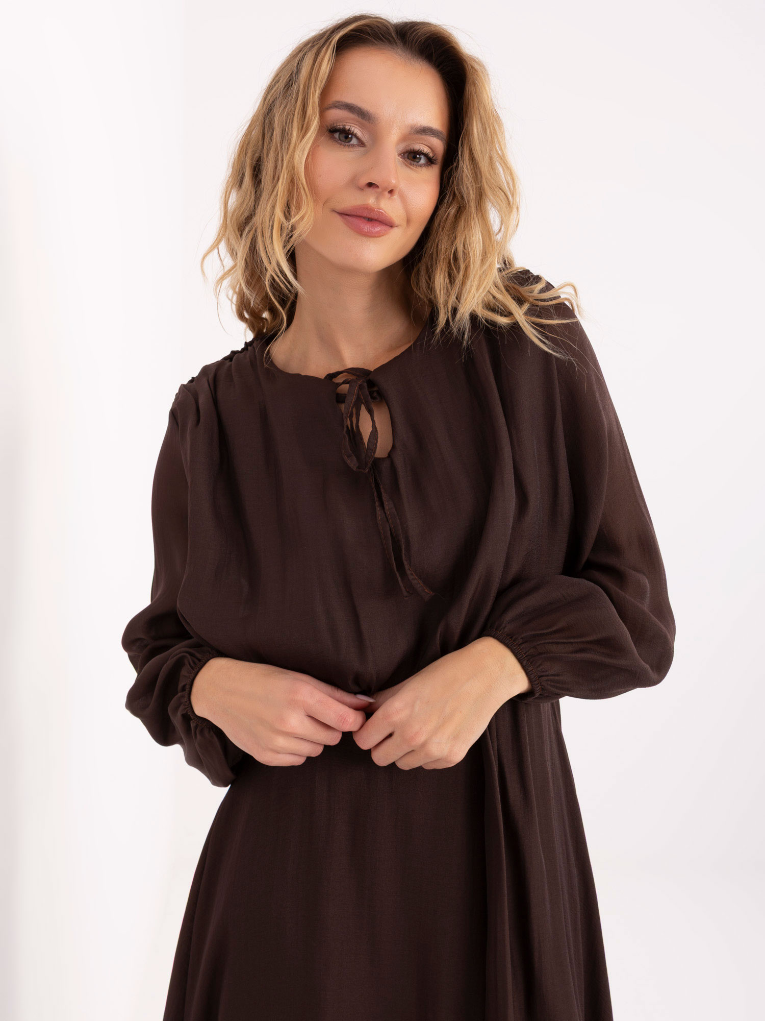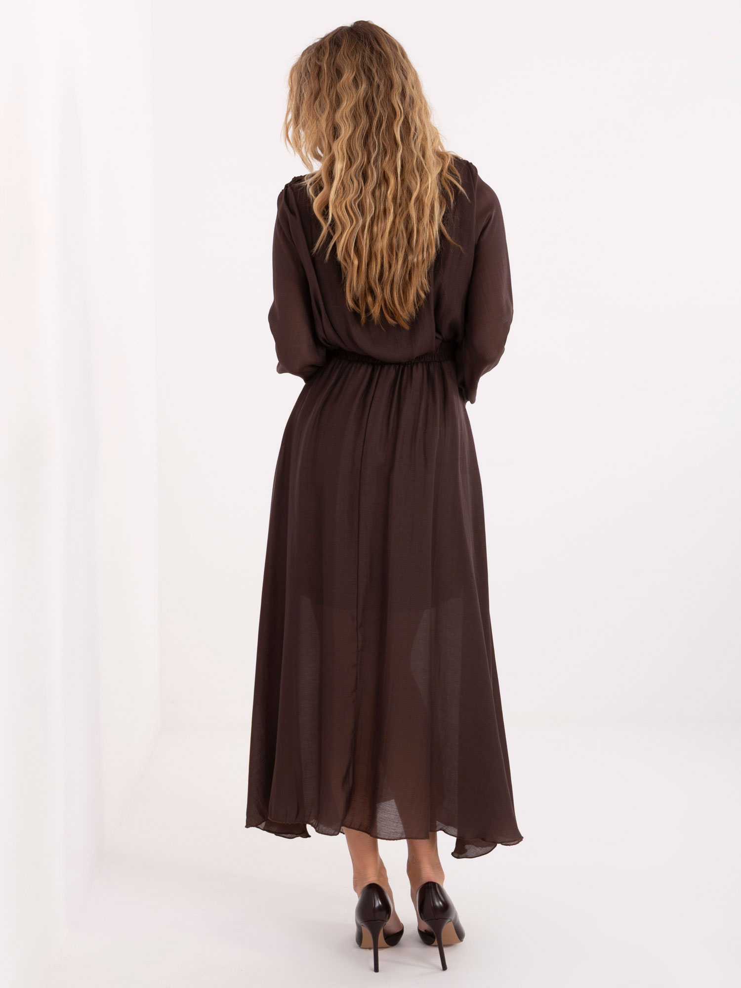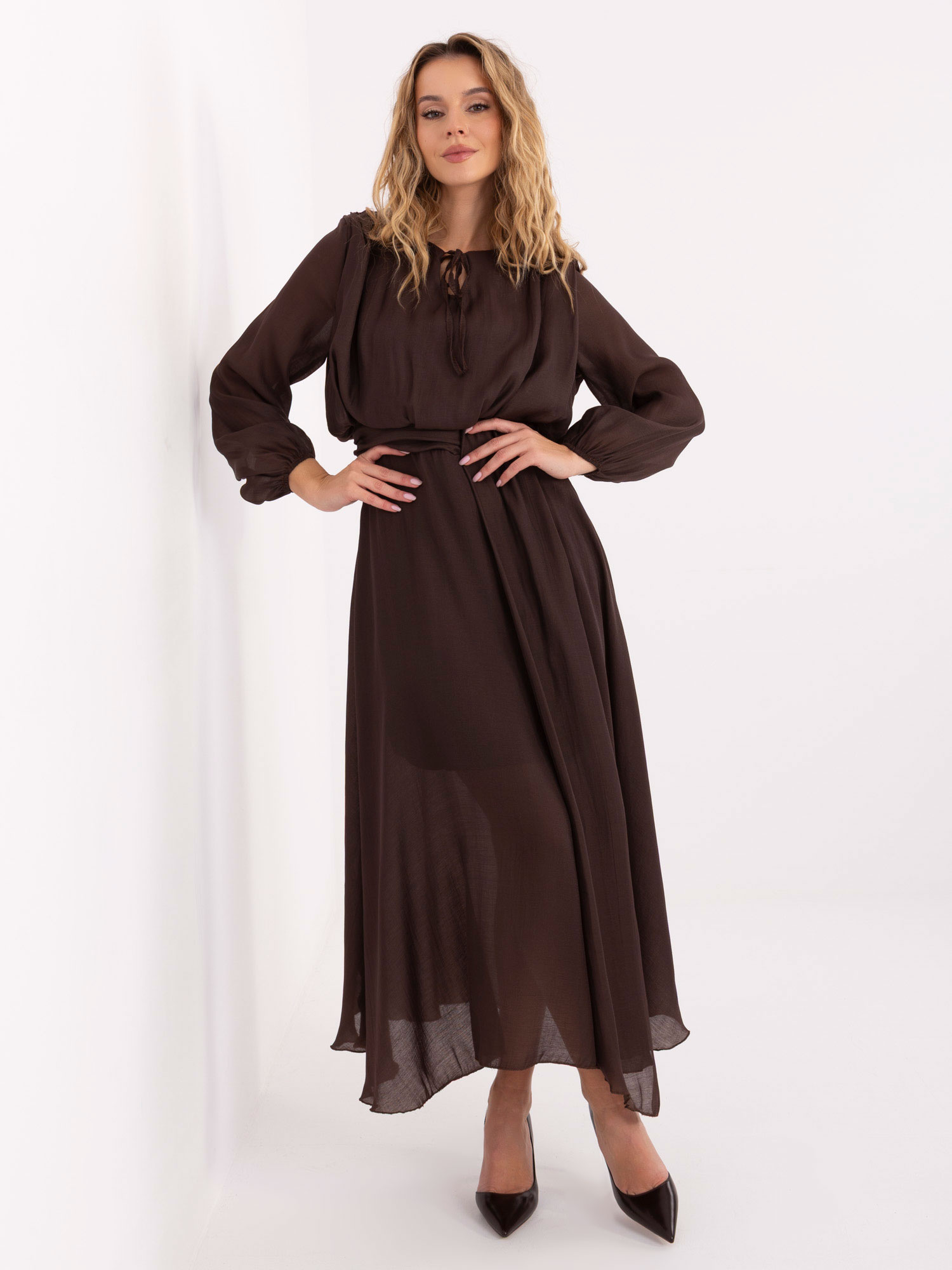 Ciemnobrązowa sukienka z długim szalem w talii RUE PARIS .