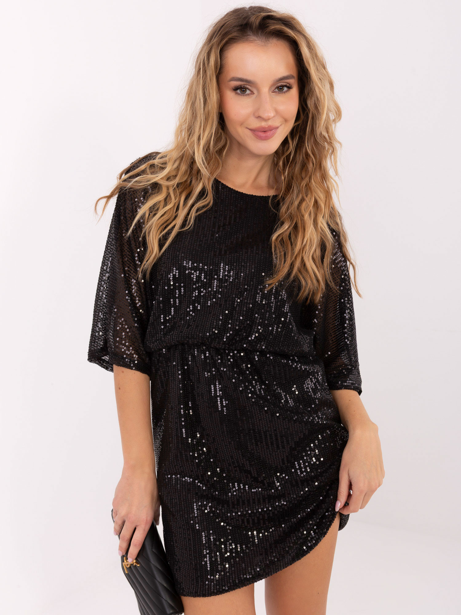 Czarna mini sukienka na imprezę .