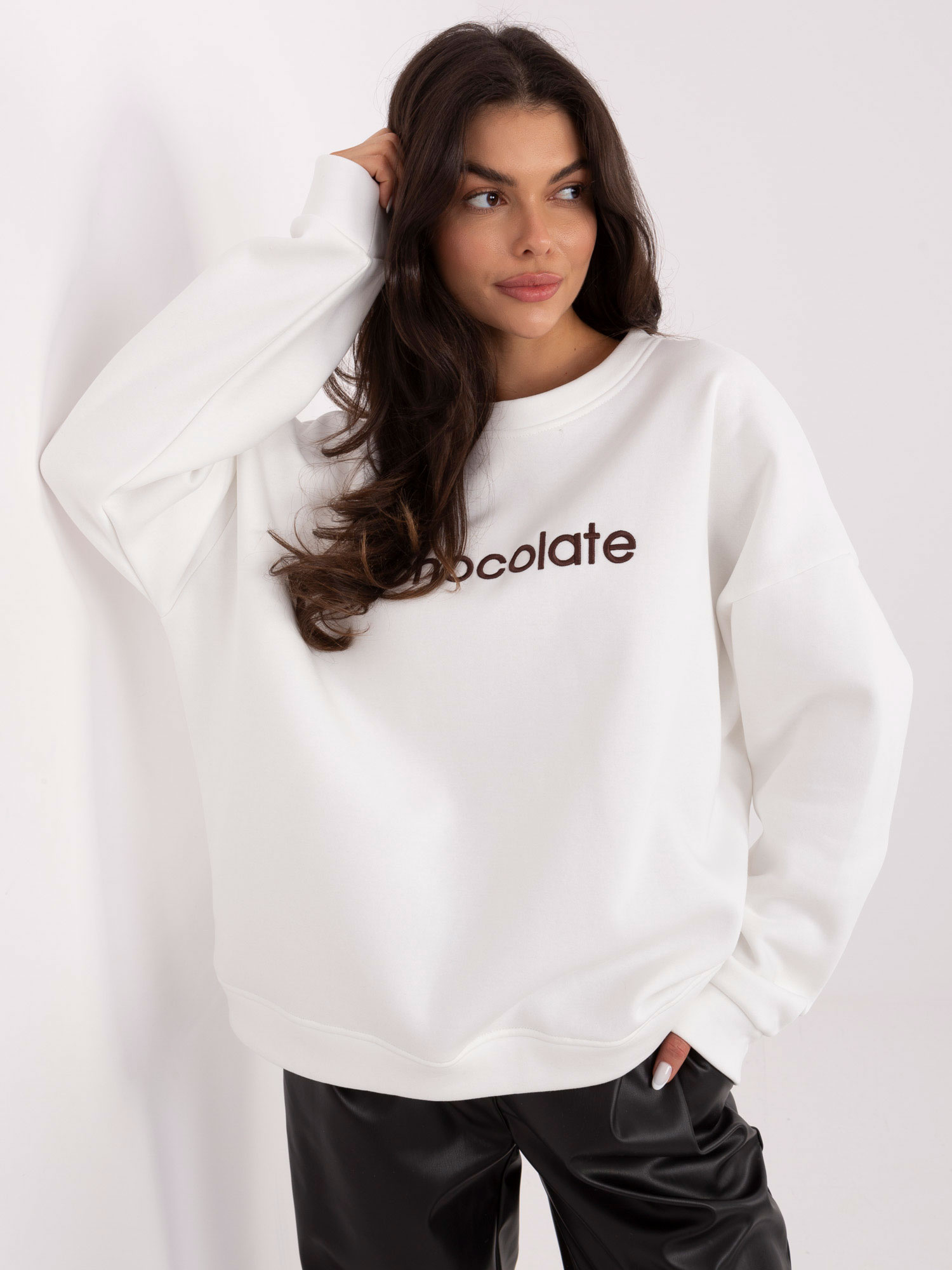 Ecru bluza oversize z haftem RUE PARIS .