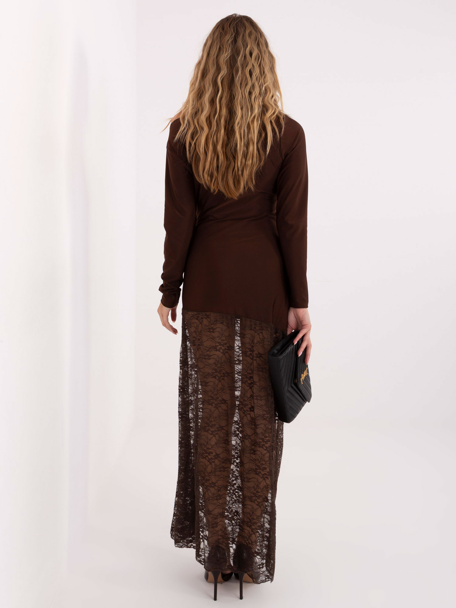 Wymiary sukienki w rozmiarze one size: szerokość pod pachami - 41 cm, szerokość w talii - 34 cm, długość rękawa - 59 cm, szerokość w biodrach - 46 cm, długość całkowita - 147 cm.