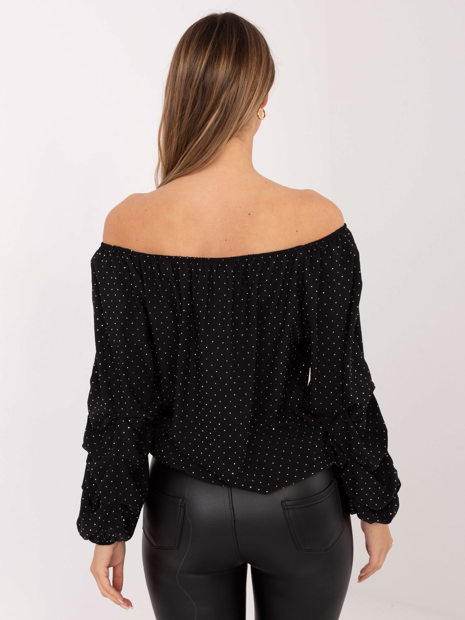 Czarna bluzka hiszpanka z marszczonym rękawem