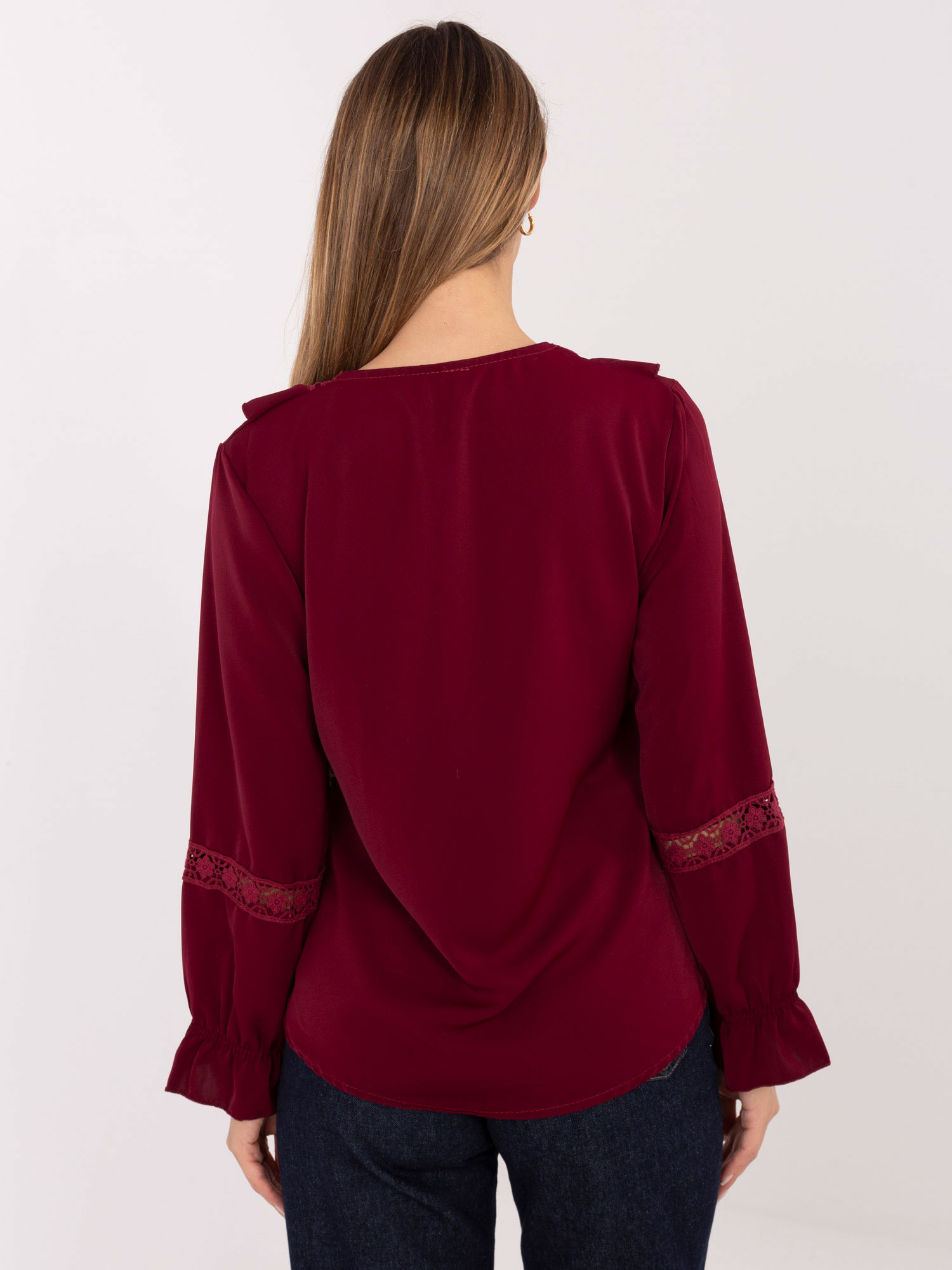 Burgundowa elegancka bluzka z rękawem typu dzwon