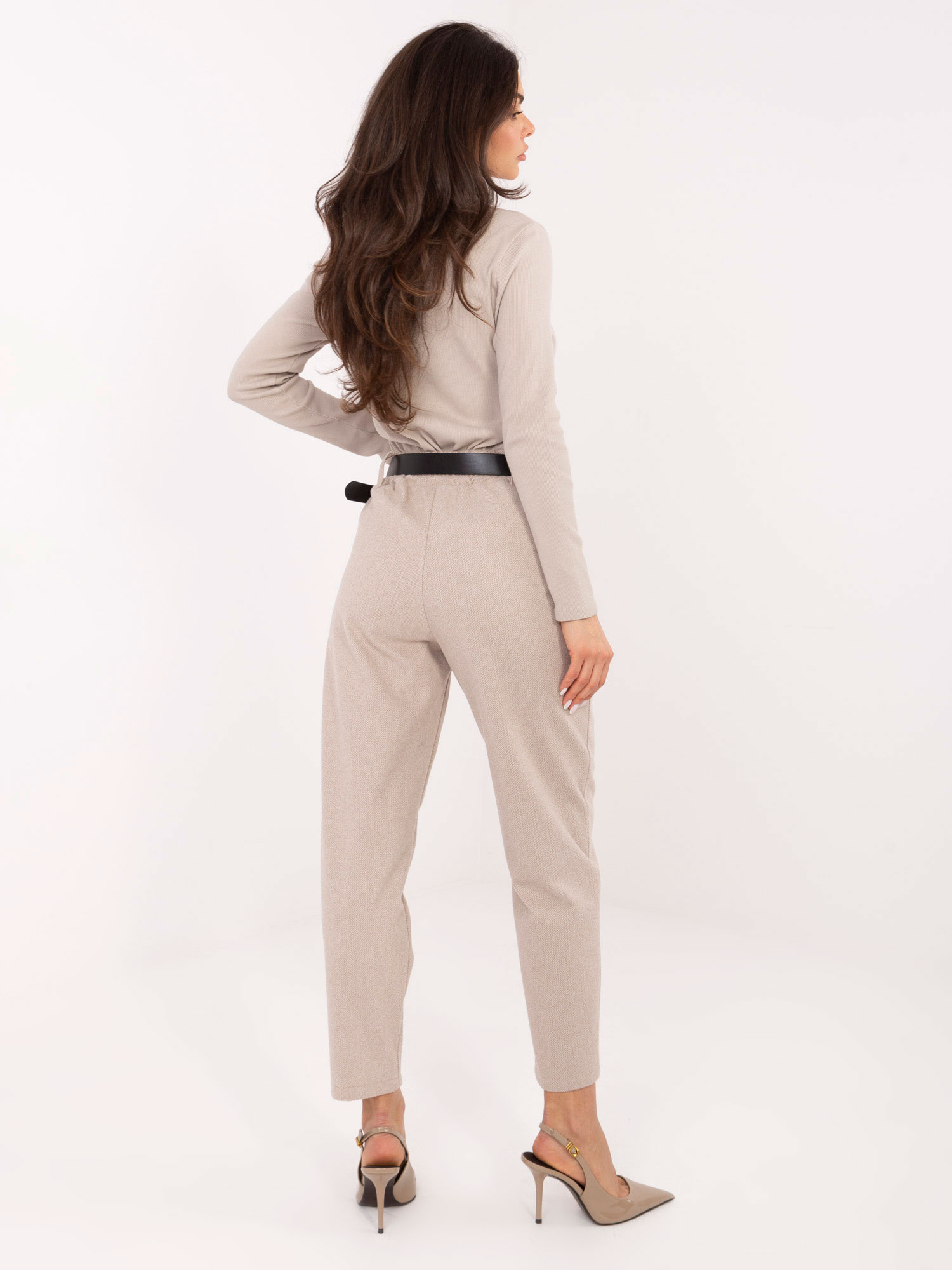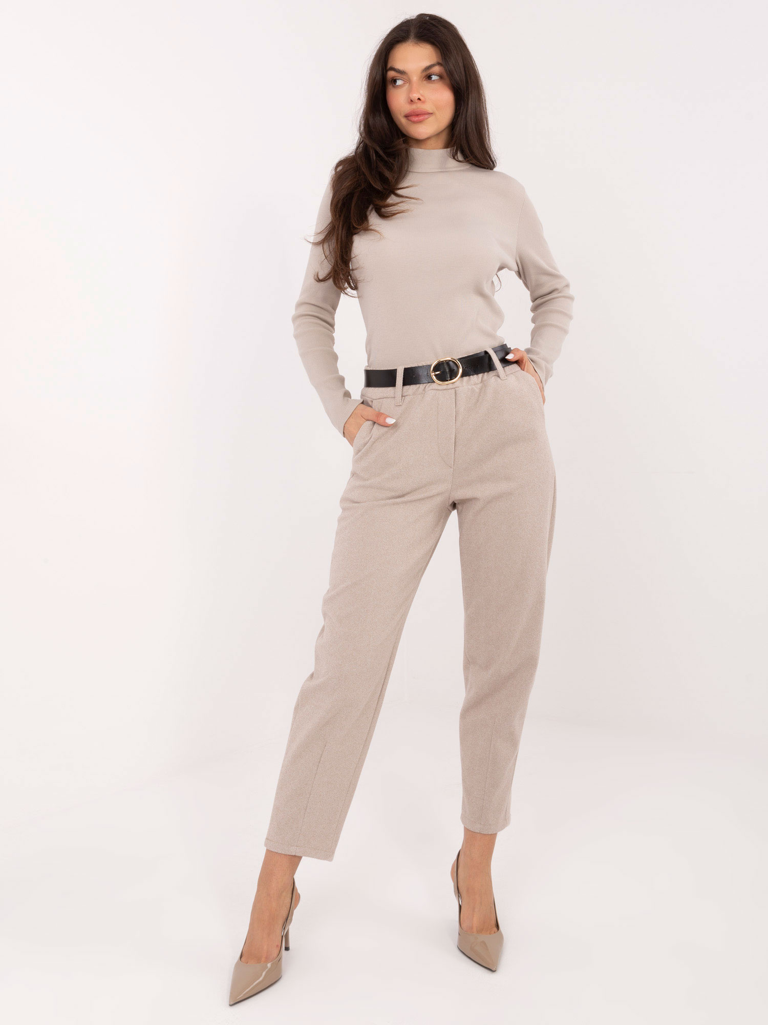 Beżowe eleganckie spodnie w jodełkę RUE PARIS .
