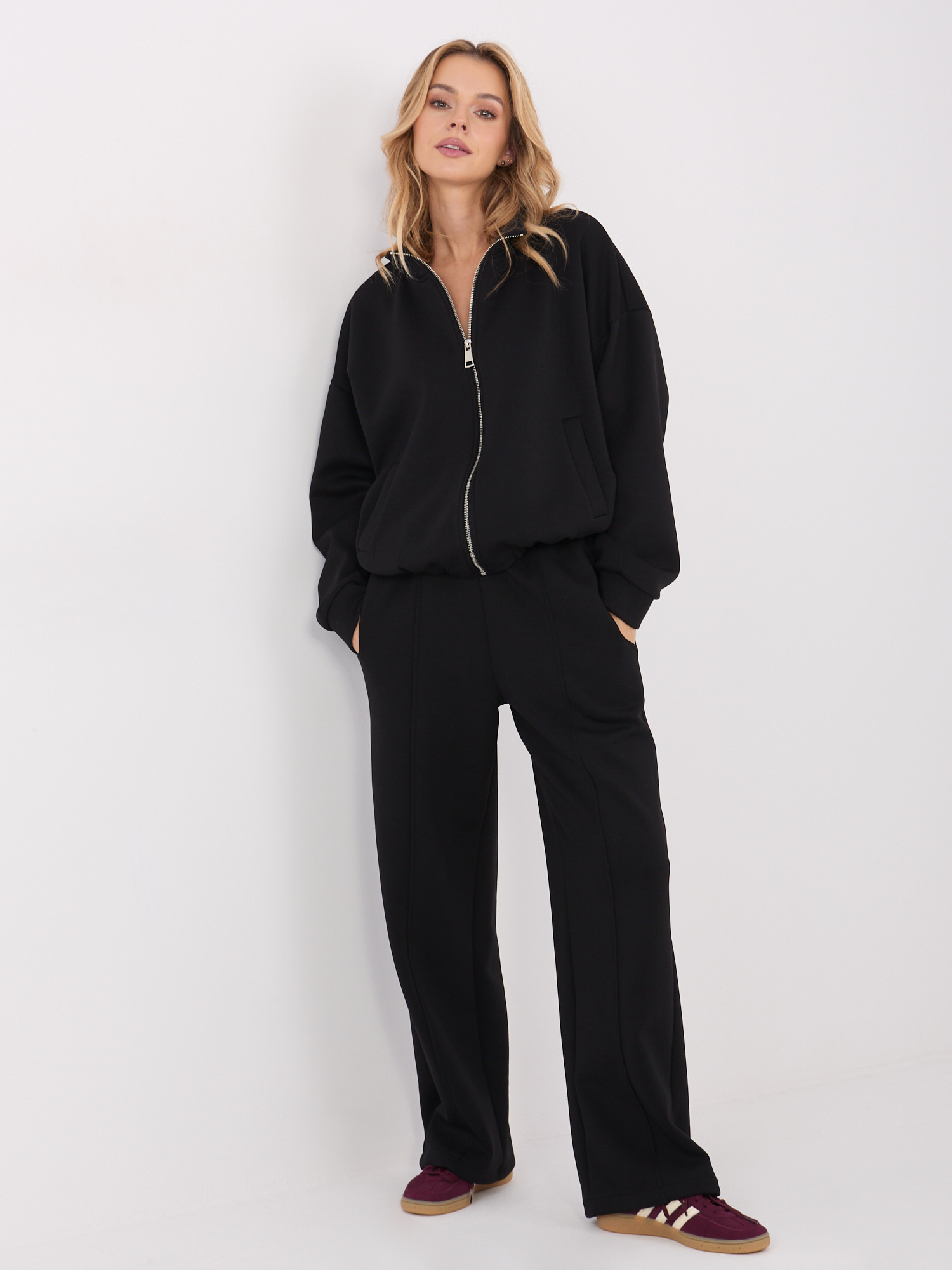 Czarne dresowe spodnie z szeroką nogawką