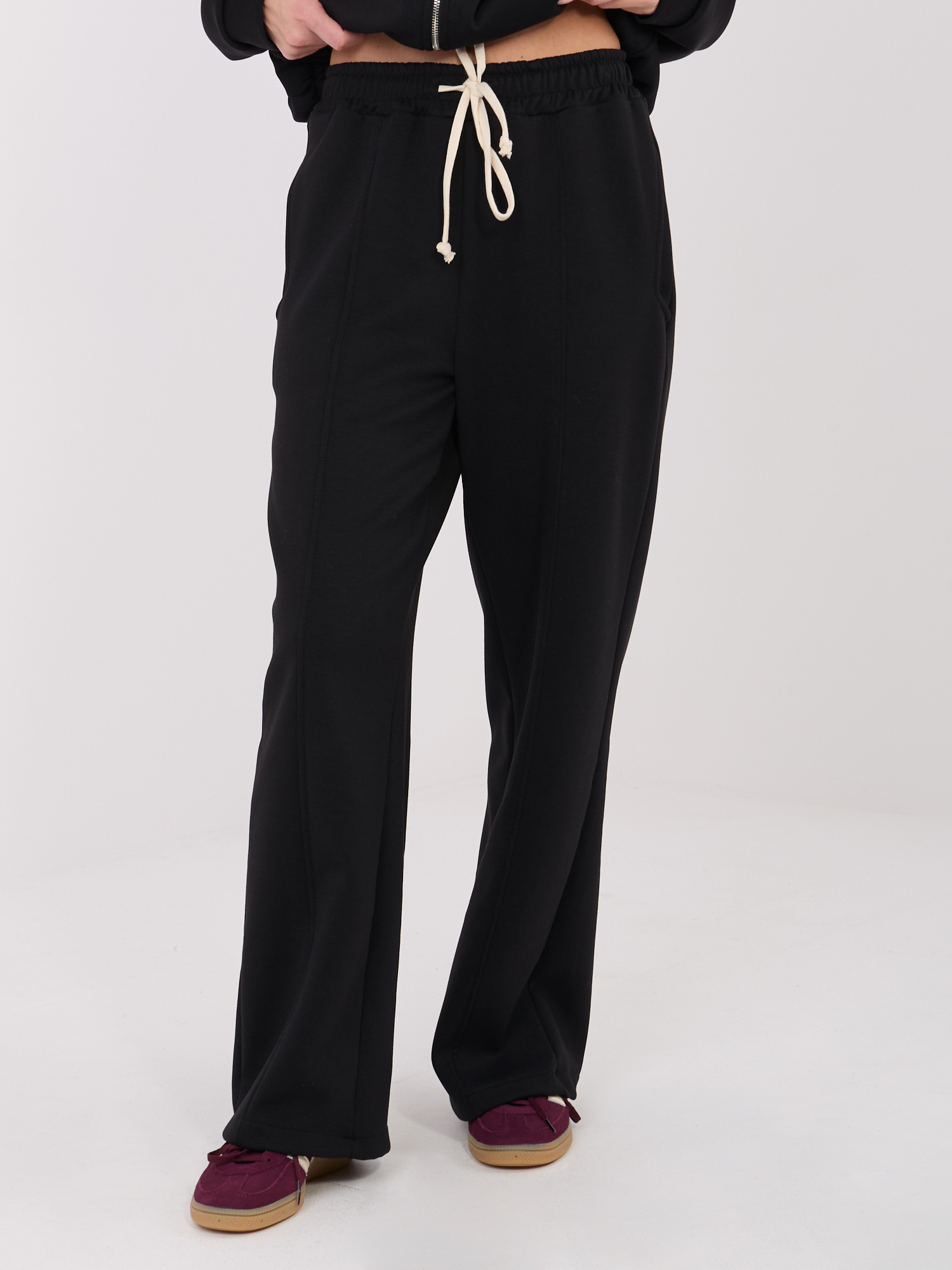 Czarne dresowe spodnie z szeroką nogawką .