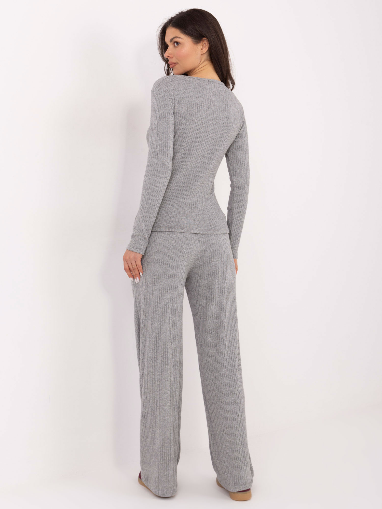 Szary prążkowany sweter z domieszką wiskozy