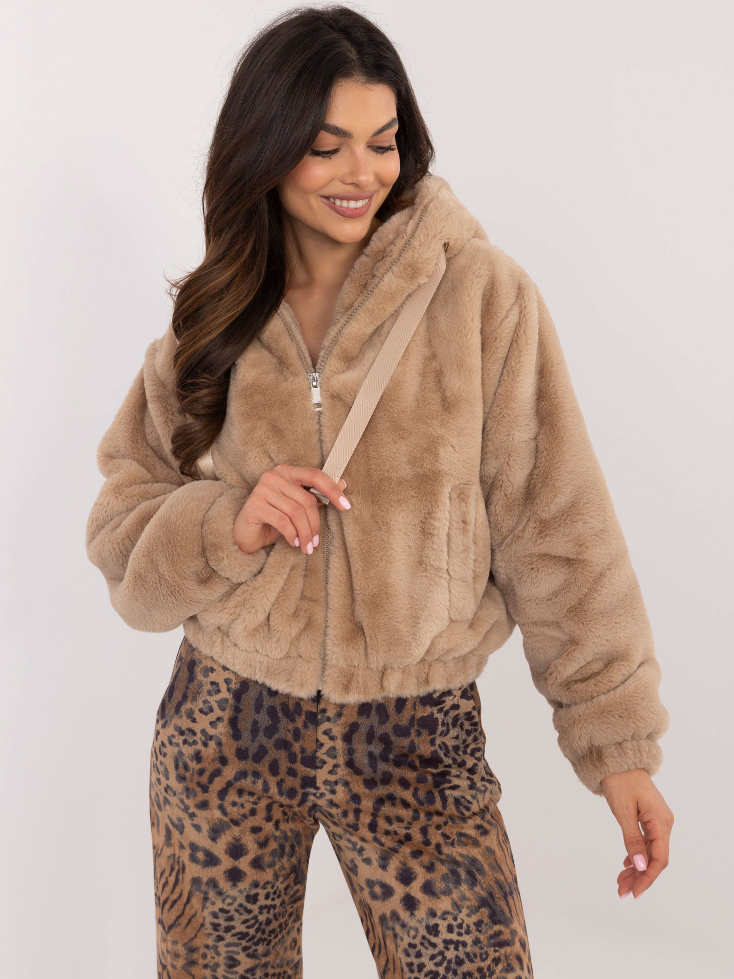 Wymiary kurtki w rozmiarze one size: szerokość pod pachami - 61 cm, długość całkowita - 52 cm, szerokość na dole - 43 cm (na płasko), szerokość na dole - 62 cm (po rozciągnięciu), długość rękawa - 60 cm (od szwu).