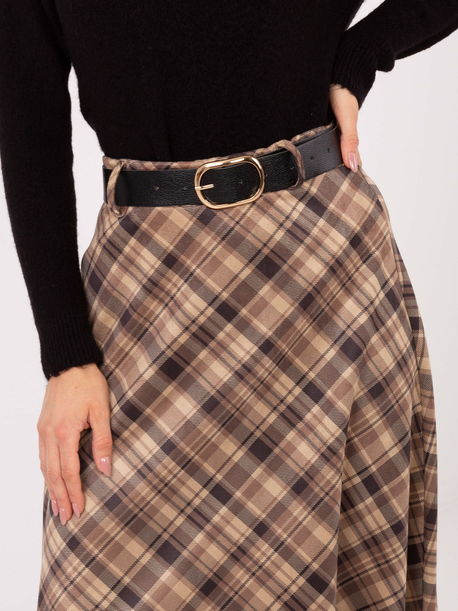 Camelowa zamszowa spódnica w kratę RUE PARIS .