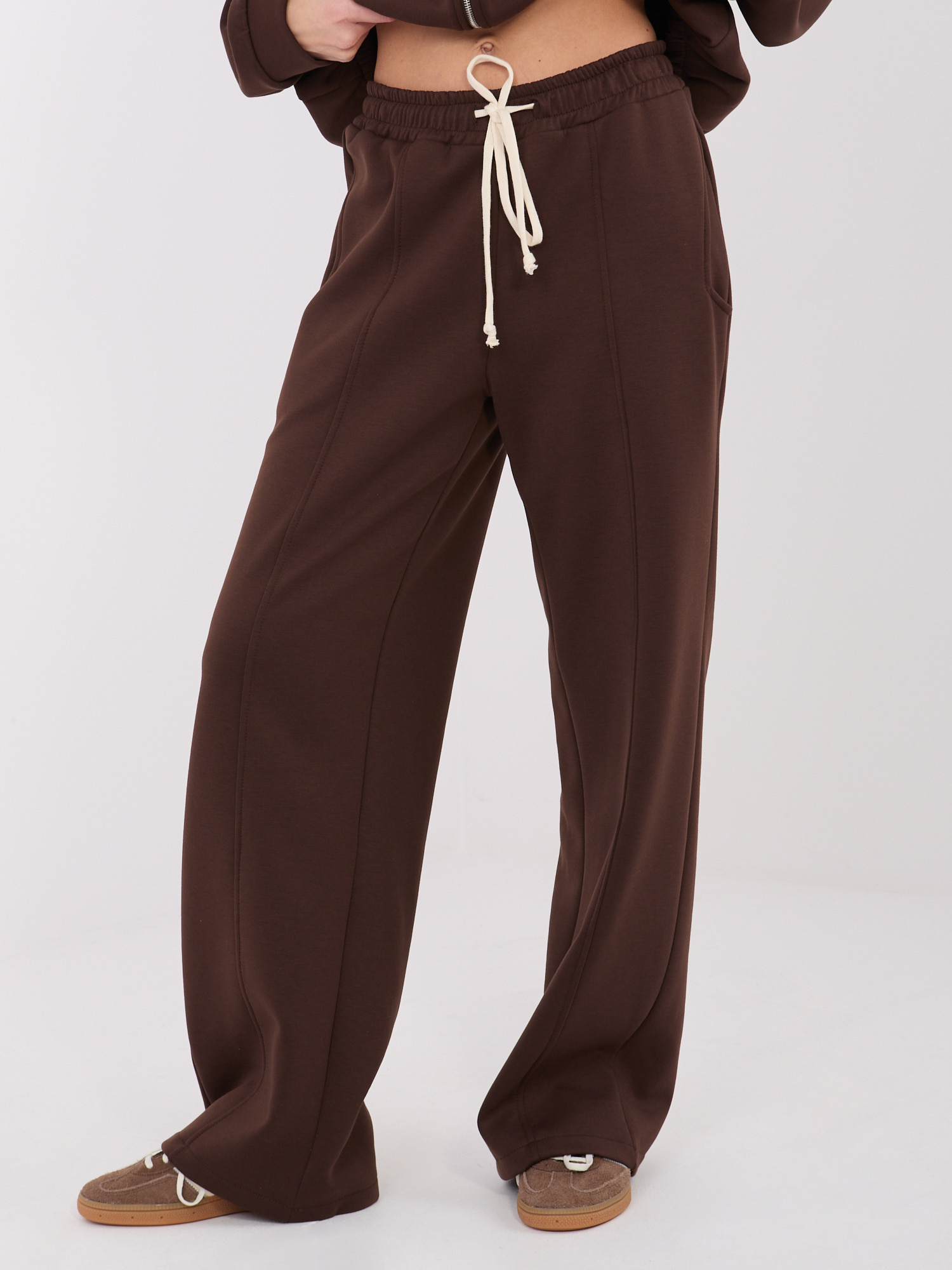 Ciemnobrązowe dresowe spodnie wide leg z wiązaniem
