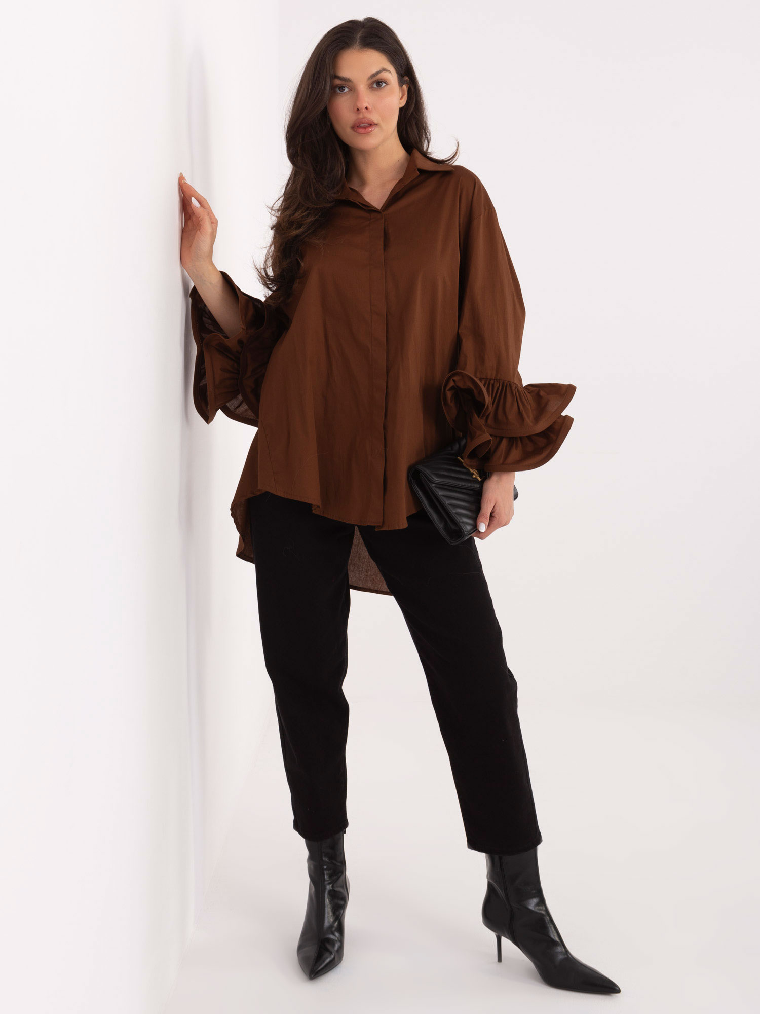 Brązowa bawełniana koszula z falbanami przy rękawach