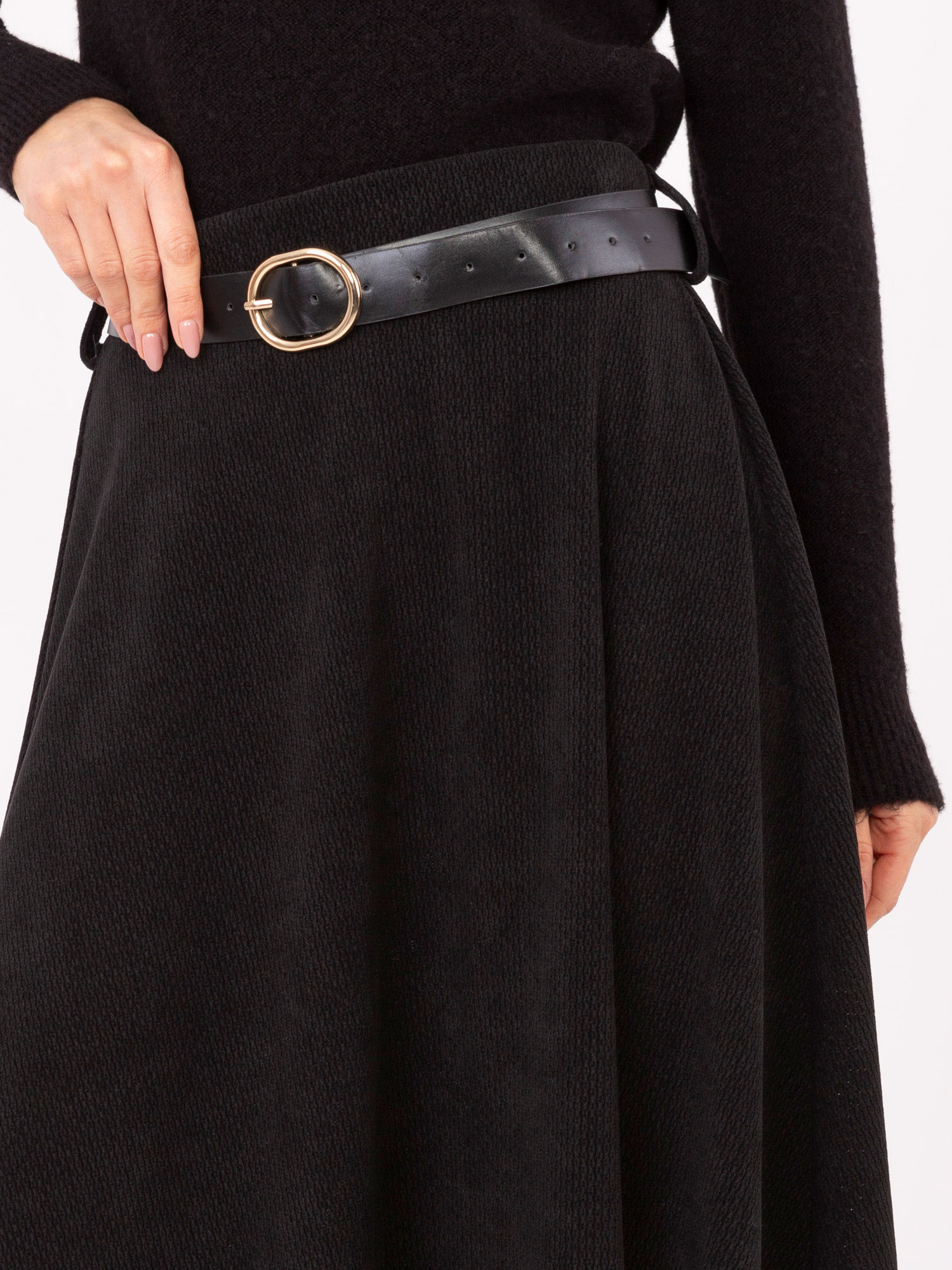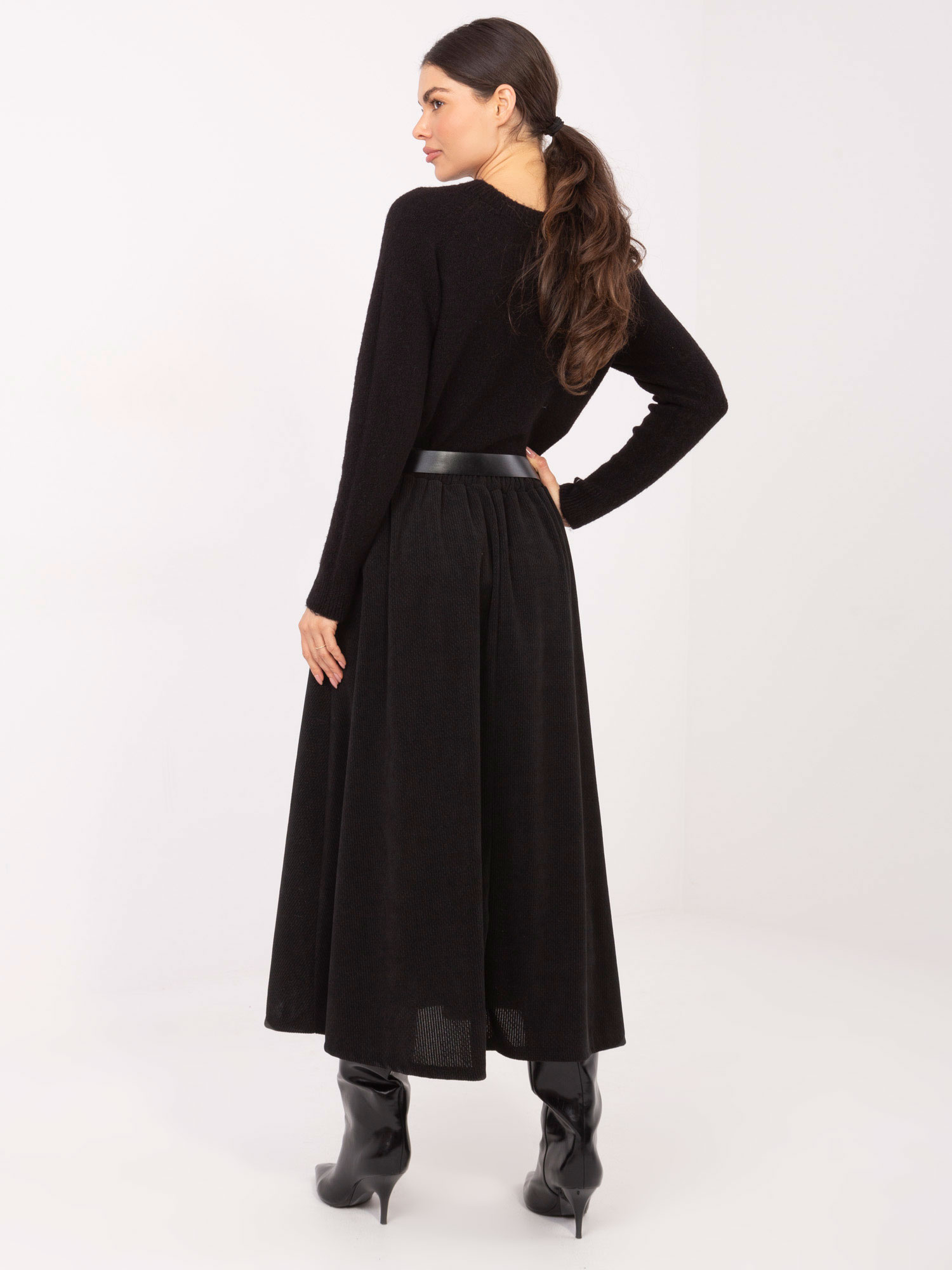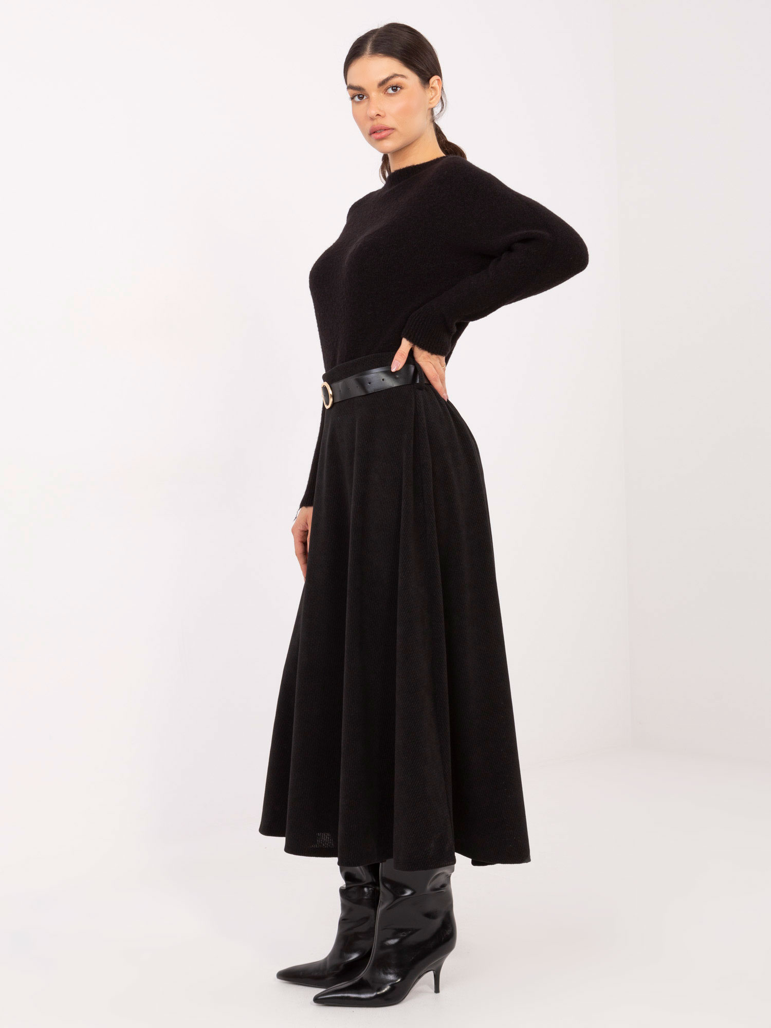 Czarna rozkloszowana spódnica z paskiem RUE PARIS .