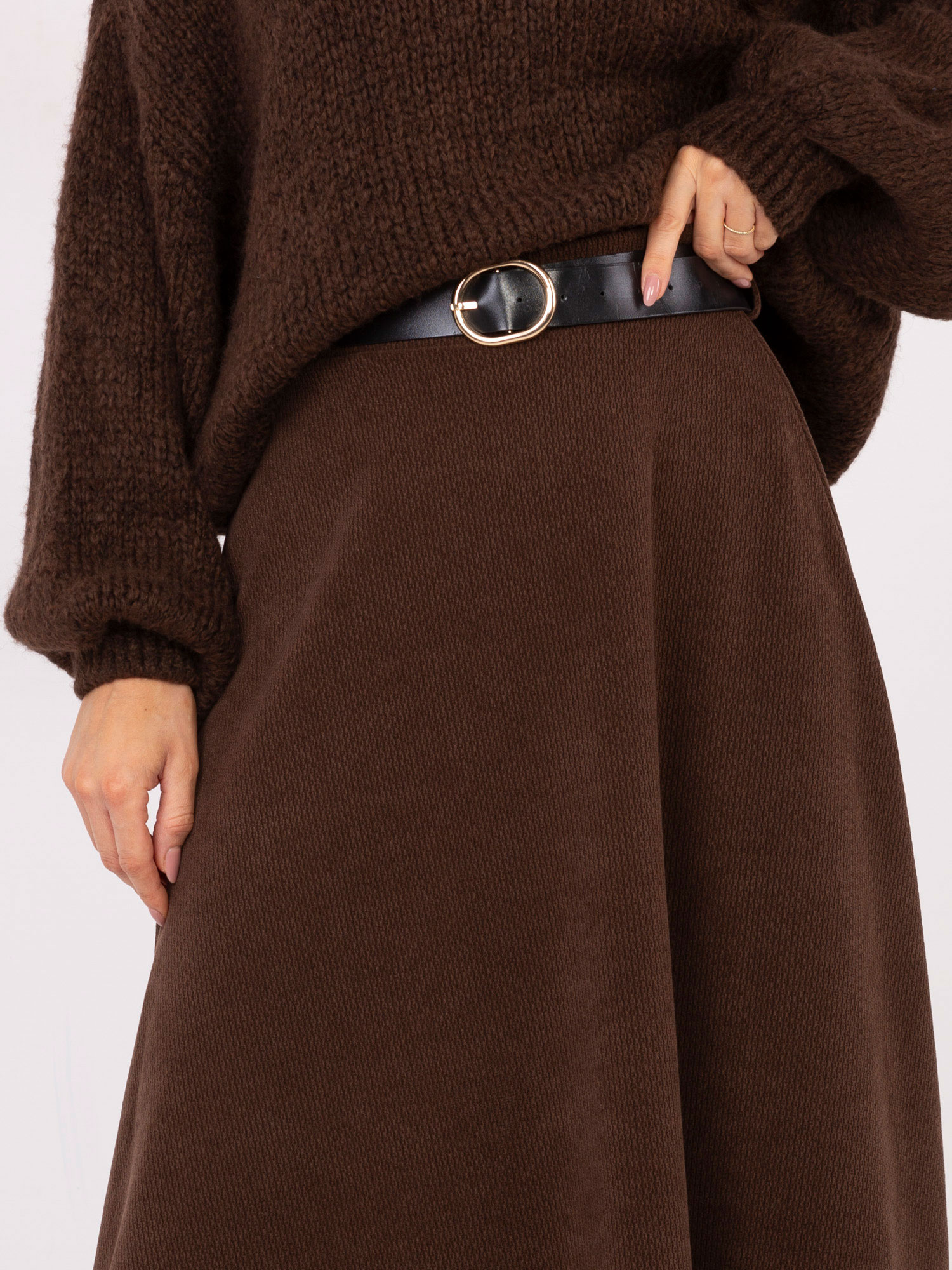 Brązowa rozkloszowana spódnica z paskiem RUE PARIS .
