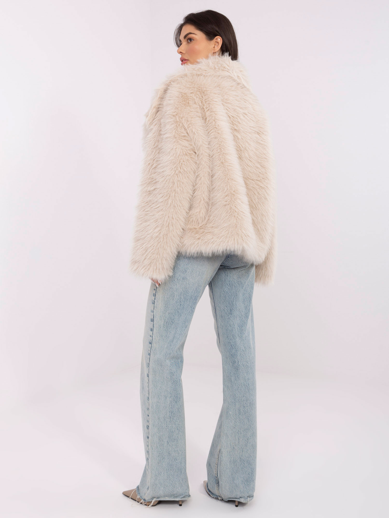 Jasnobeżowa zimowa kurtka ze sztucznego futerka