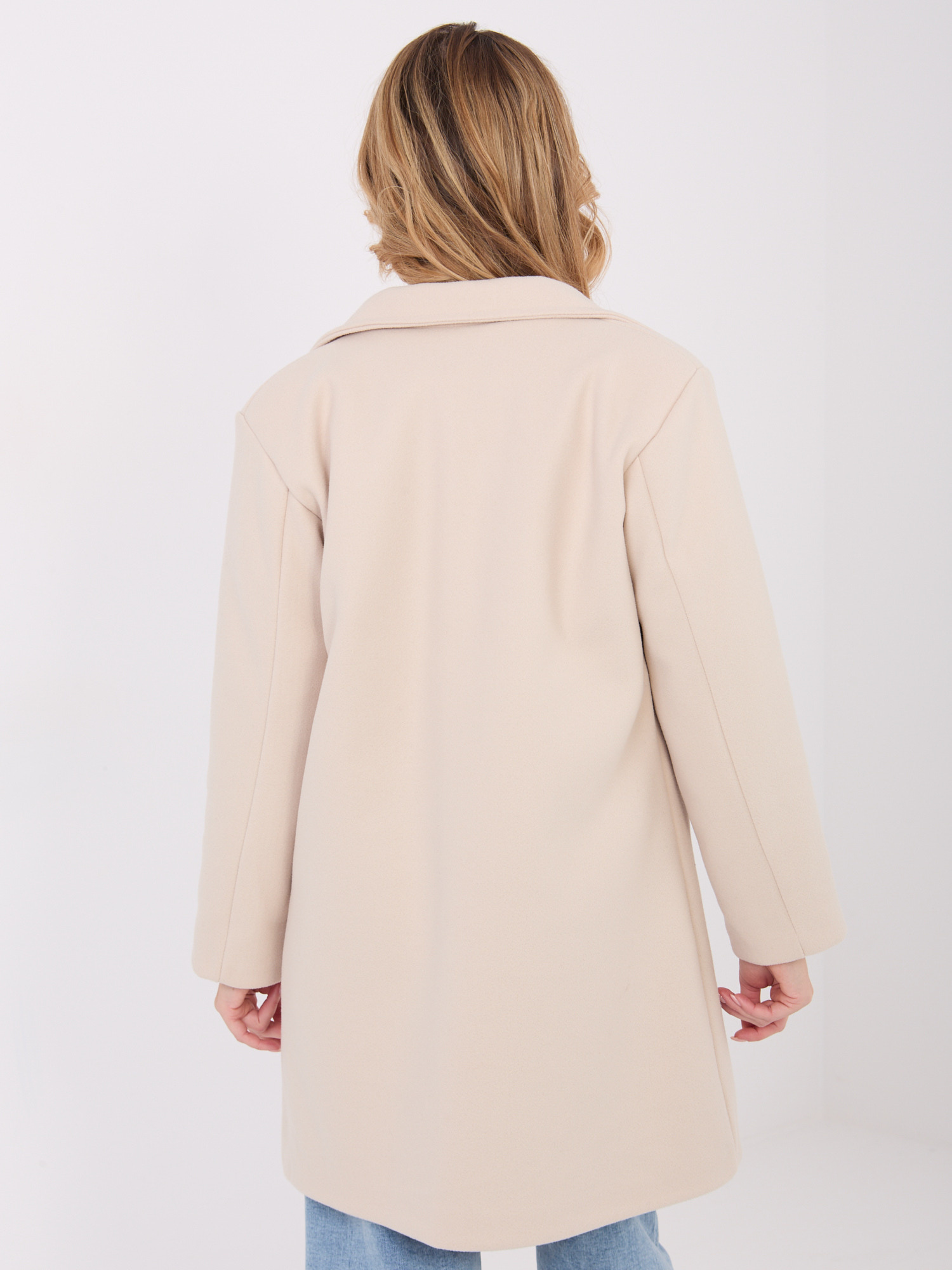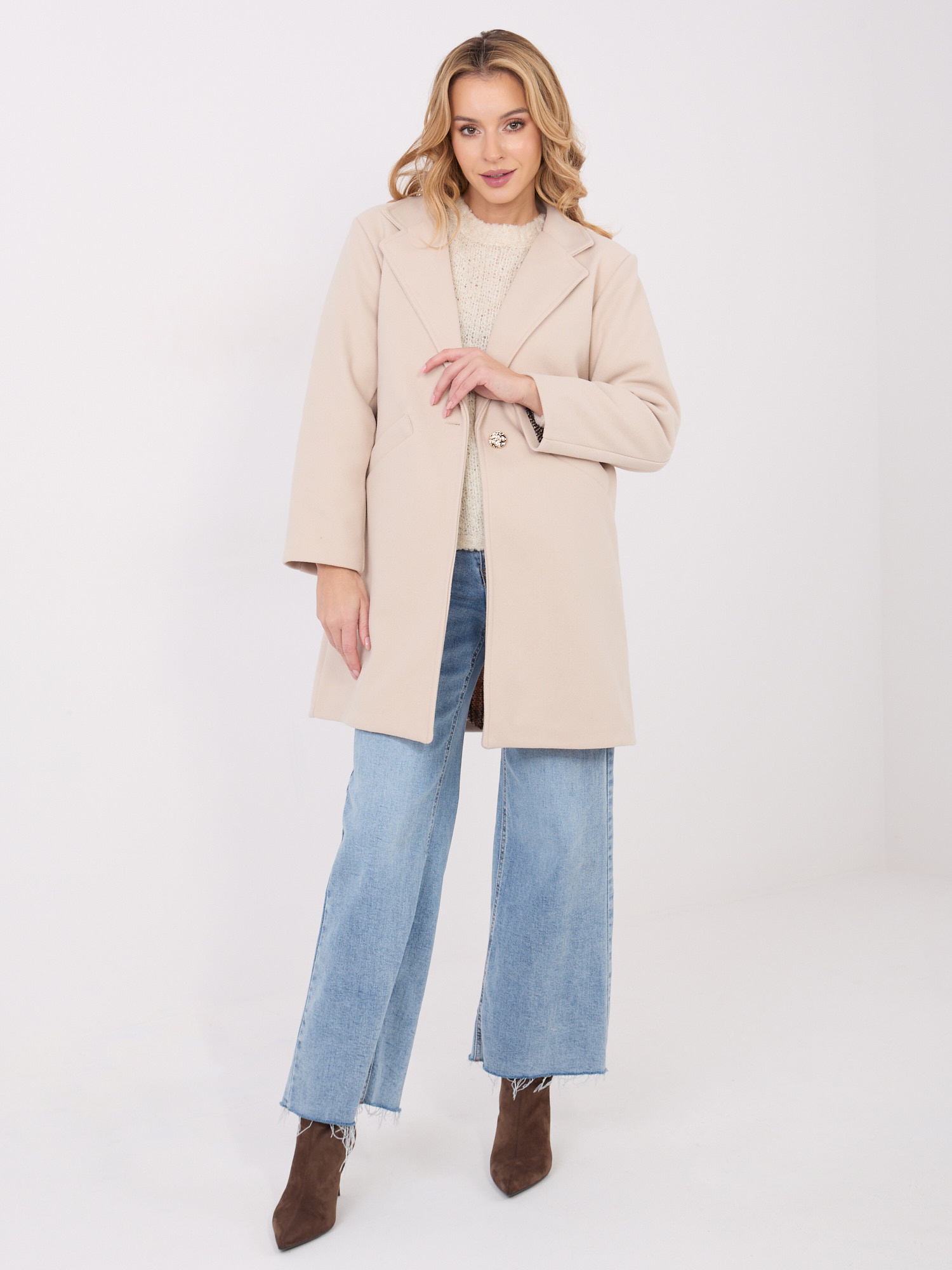 Jasnobeżowy płaszcz z ozdobnym guzikiem