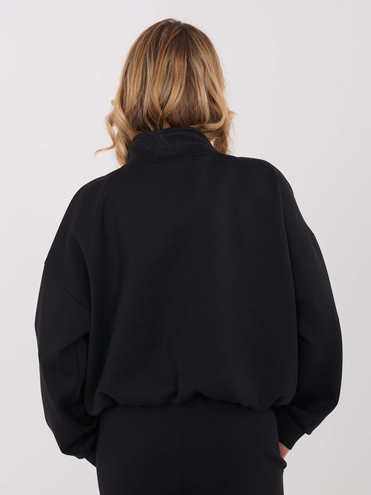 Wymiary bluzy w rozmiarze one size: szerokość pod pachami - 68 cm, długość całkowita - 57 cm, szerokość na dole - 49 cm (na płasko), szerokość na dole - 93 cm (po rozciągnięciu), długość rękawa - 50 cm (od szwu).